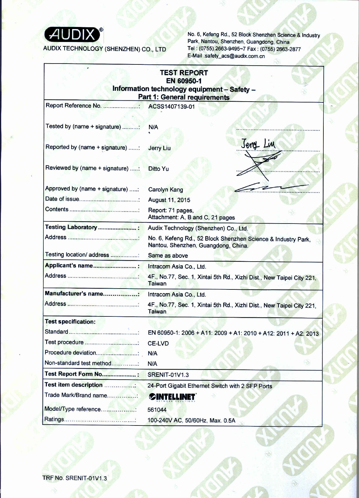 Report For ACSS1407139 01 August 11, 2015 LVD Of 561044