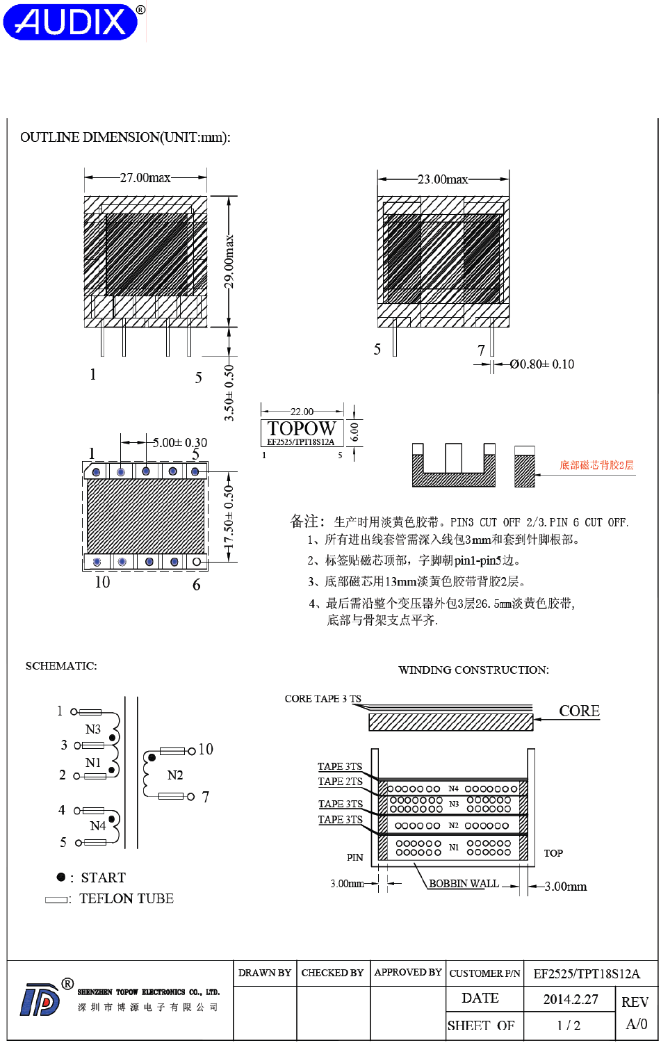 Attachment C: Transformer T1 Specification for TPT18S12A (model: EF2525) Page 5 of 6