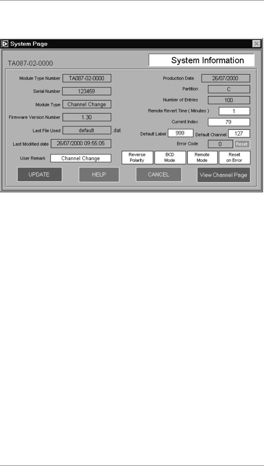 This button brings up the Channel Data Page, provided it has been opened before by the