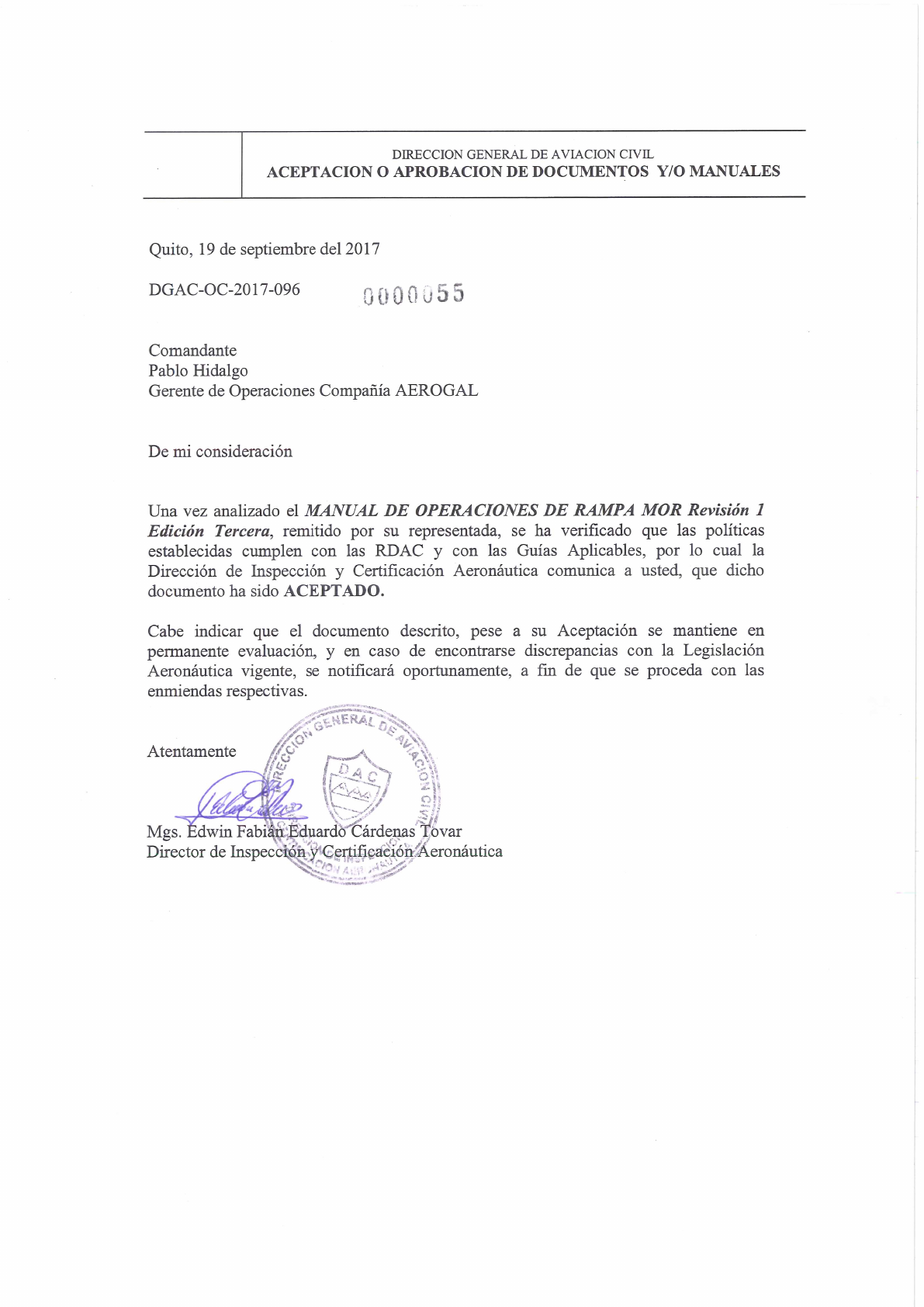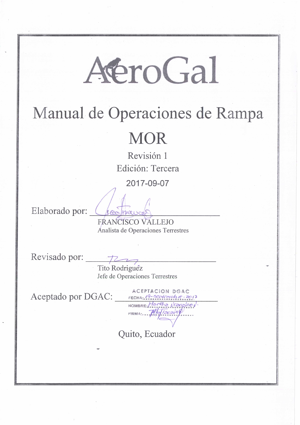 Este manual ha sido preparado para la atención de aeronaves de la compañía; cumpliendo así con lo requerido
