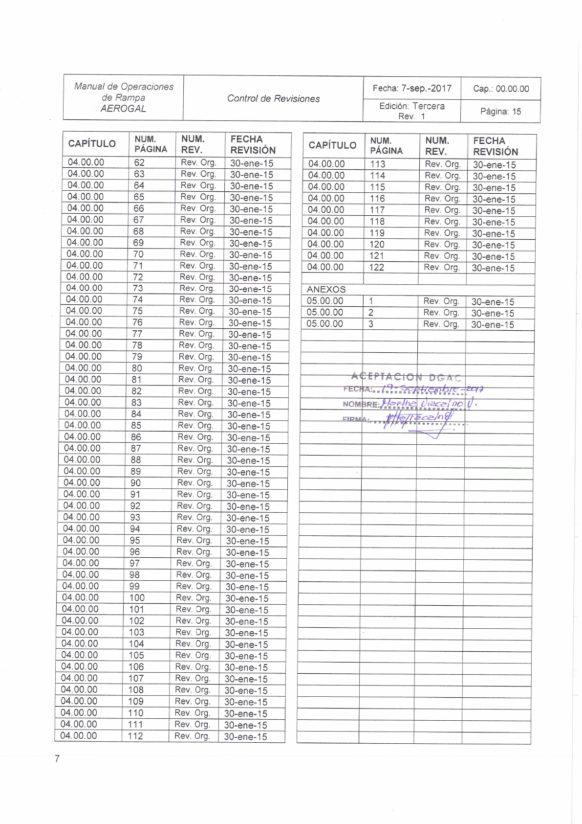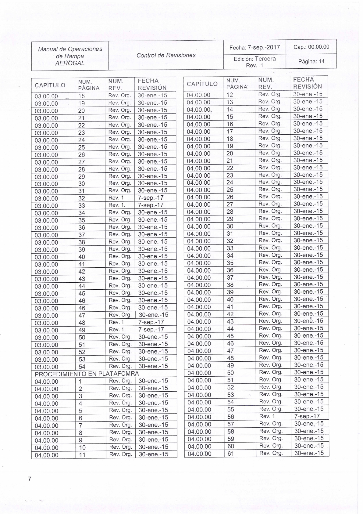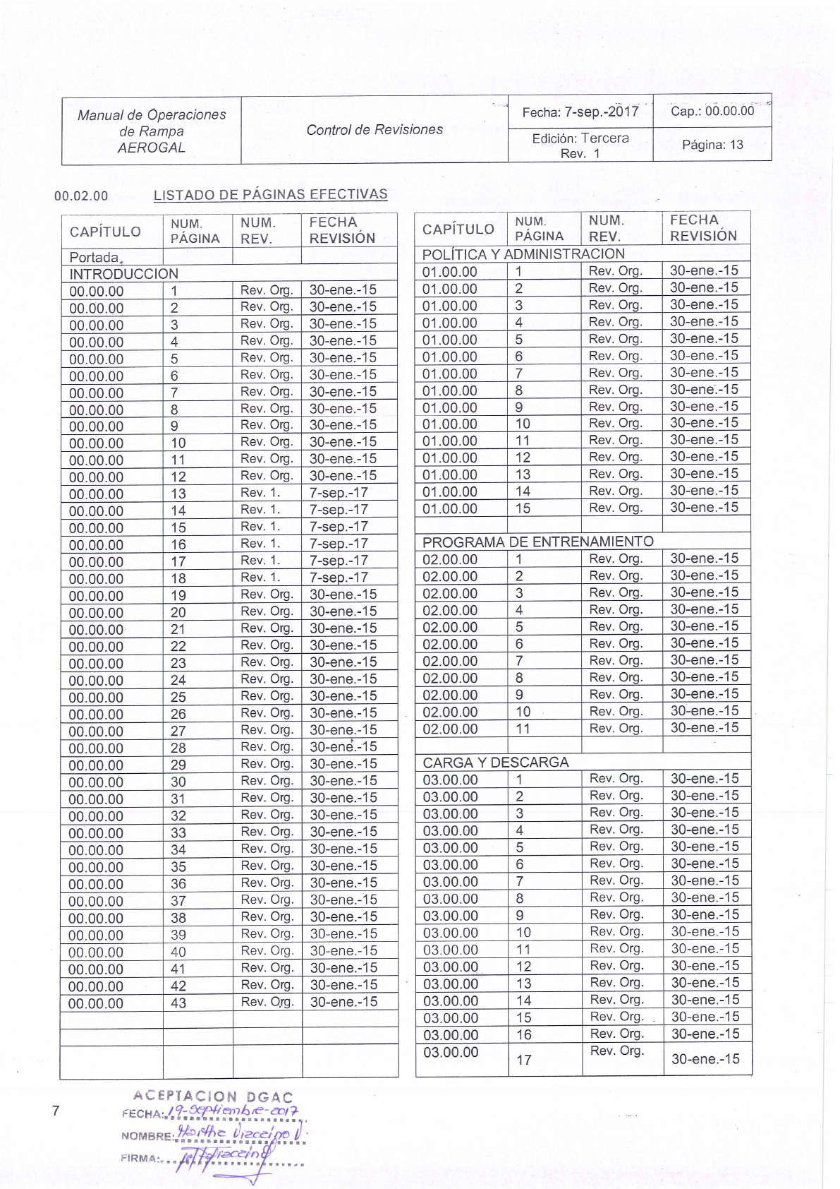 Será responsabilidad del Jefe de Rampa, el asegurar que toda la información contenida en este manual sea