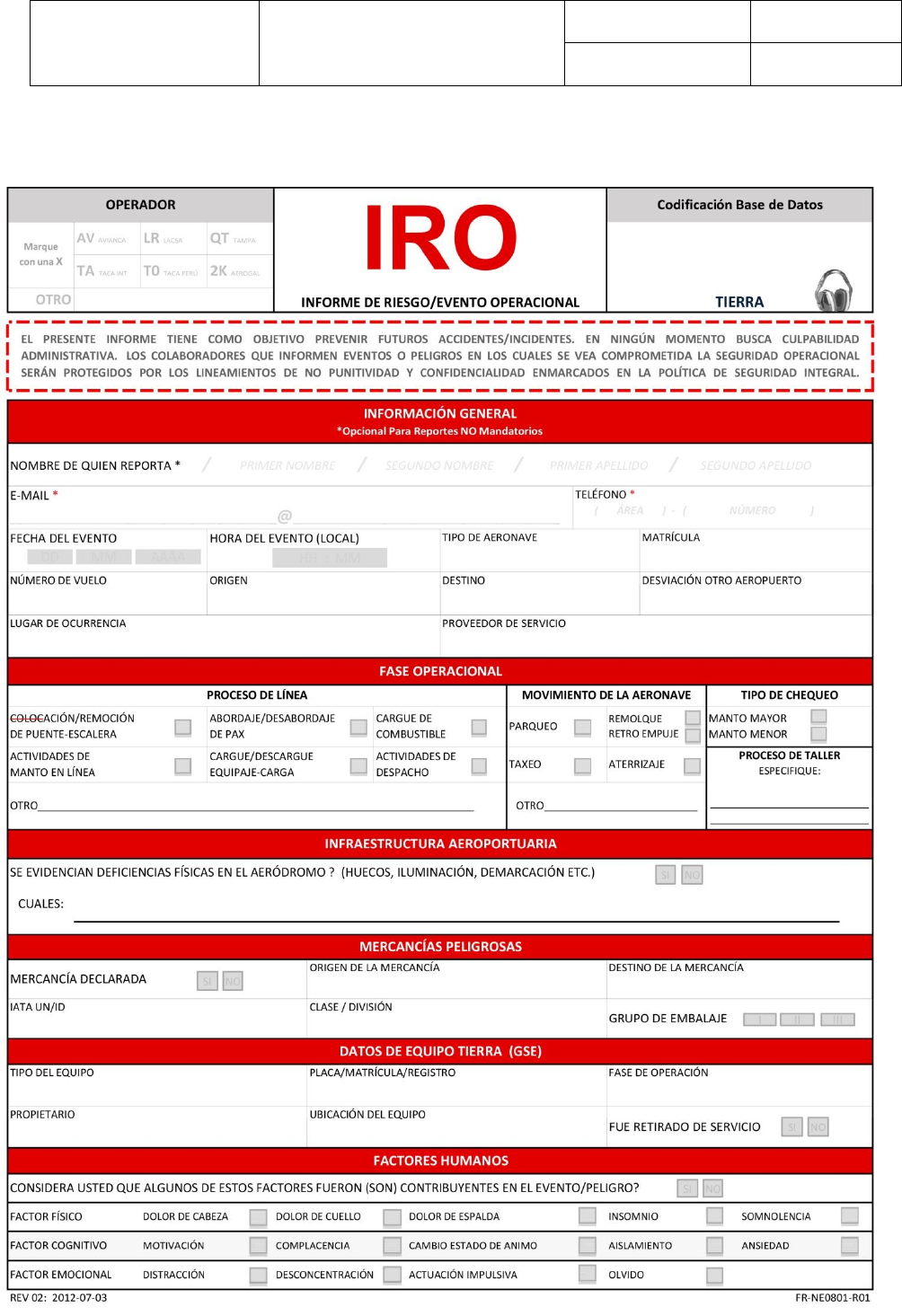 05.01.01 Formato 1 Formato de Reporte de Seguridad Operacional (IRO)