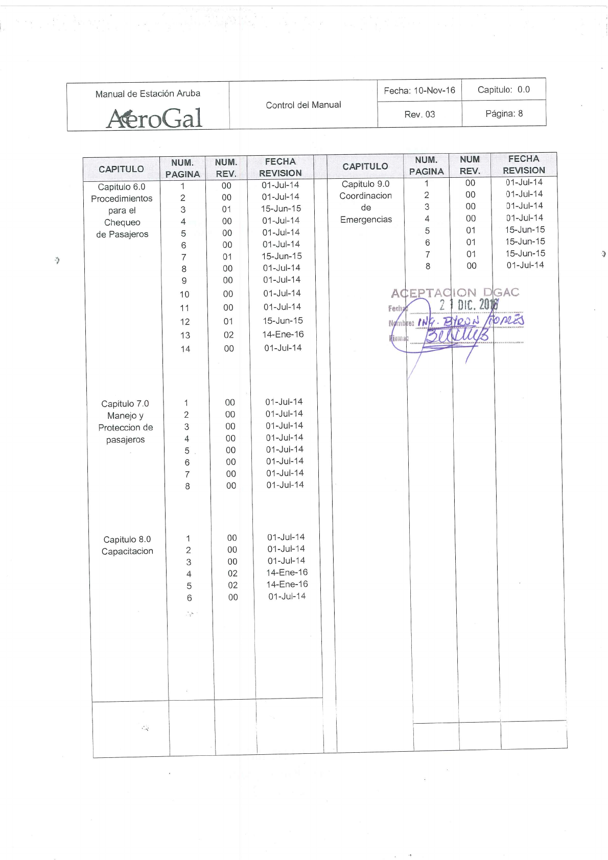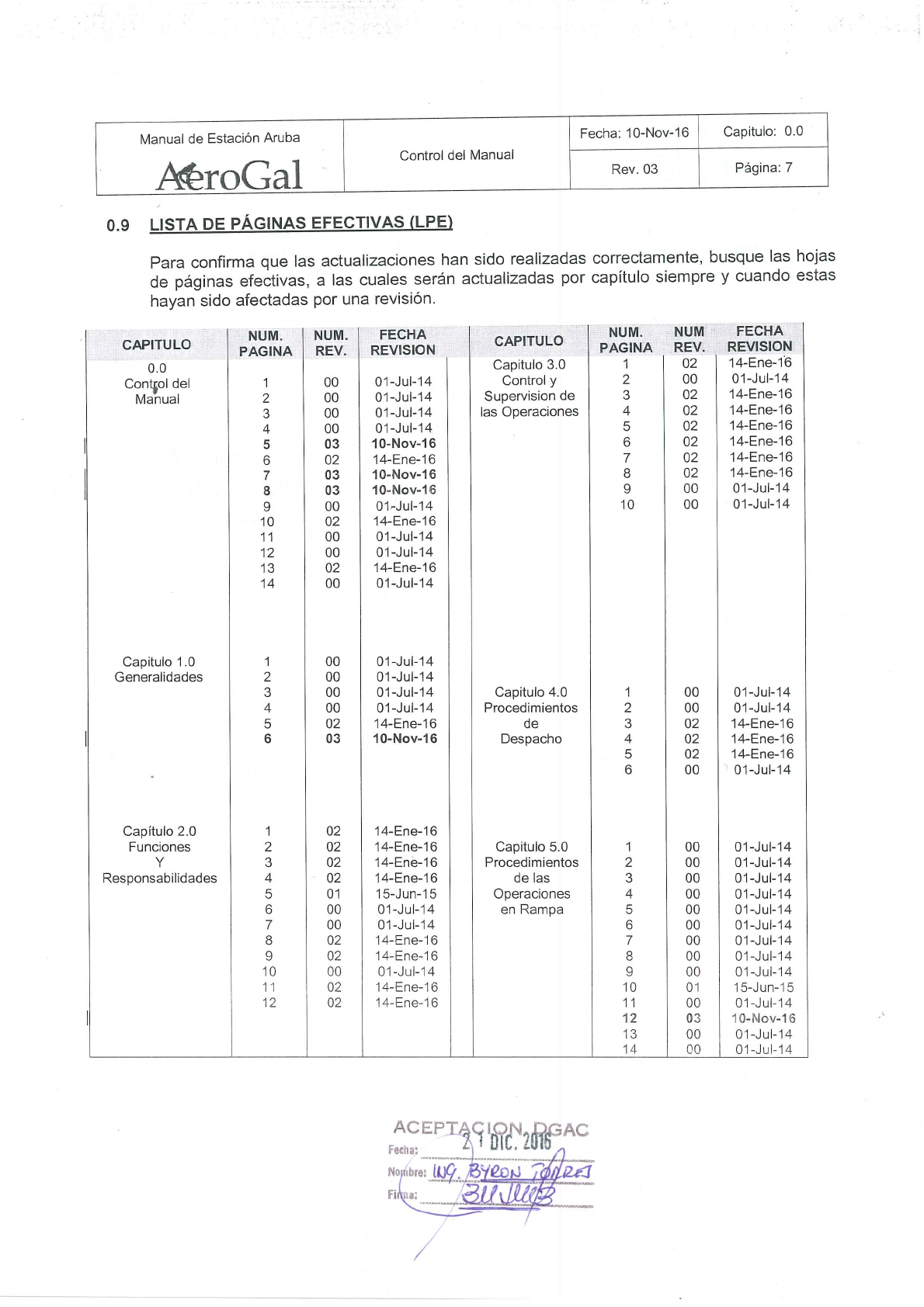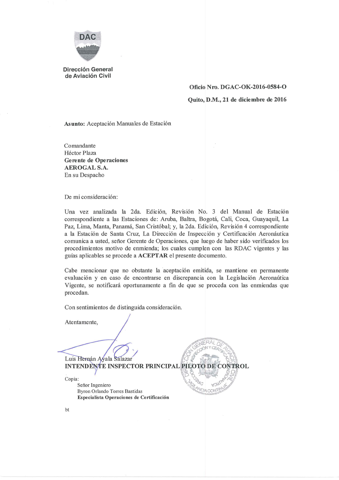 Los procedimientos publicados por Aerogal cuentan con la aprobación por parte de la