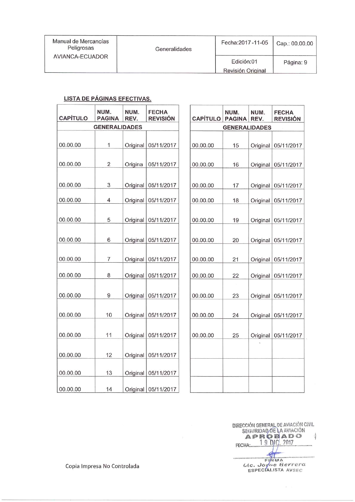 LISTA DE PÁGINAS EFECTIVAS. .............................................................................. 9