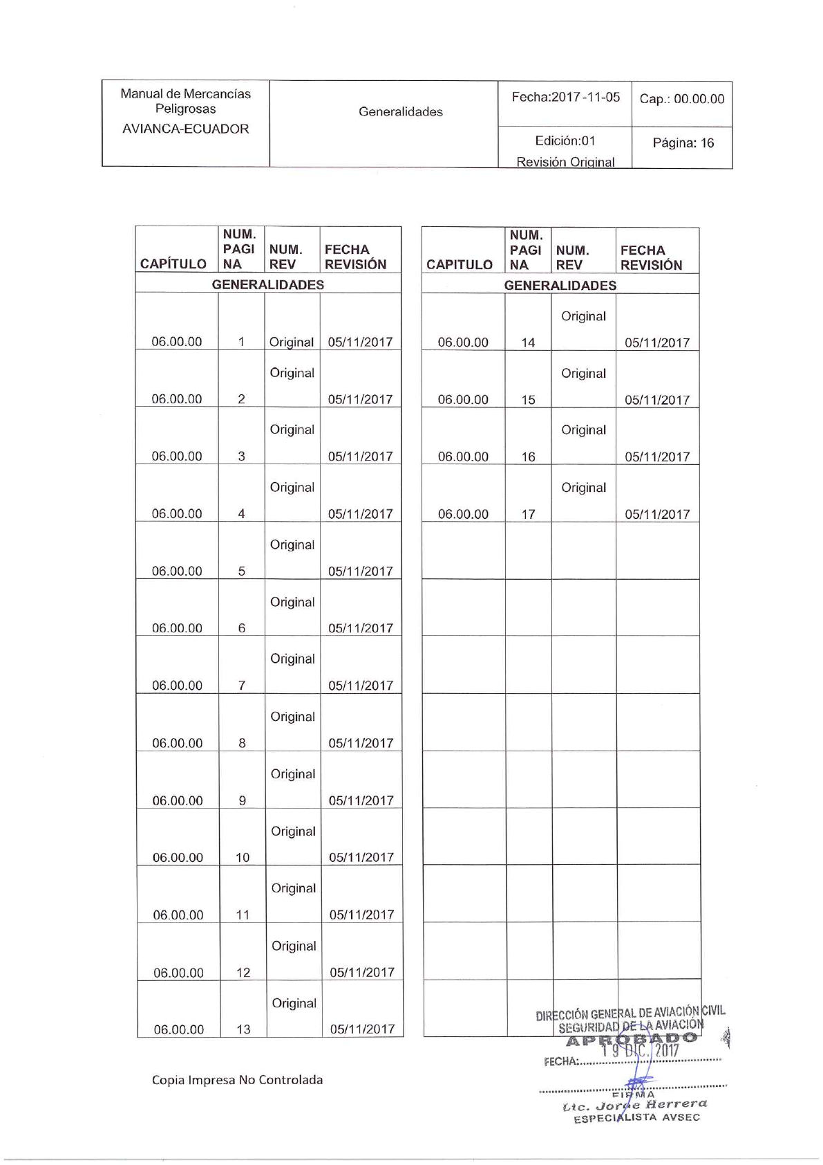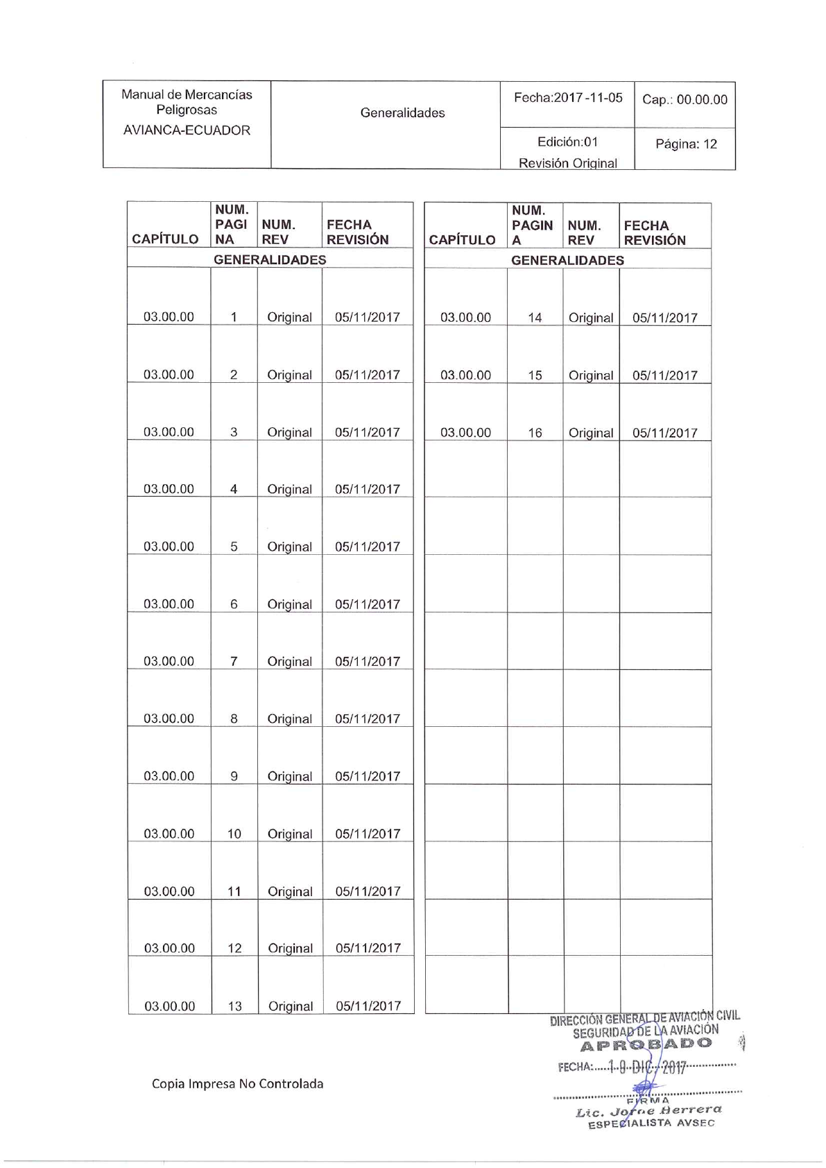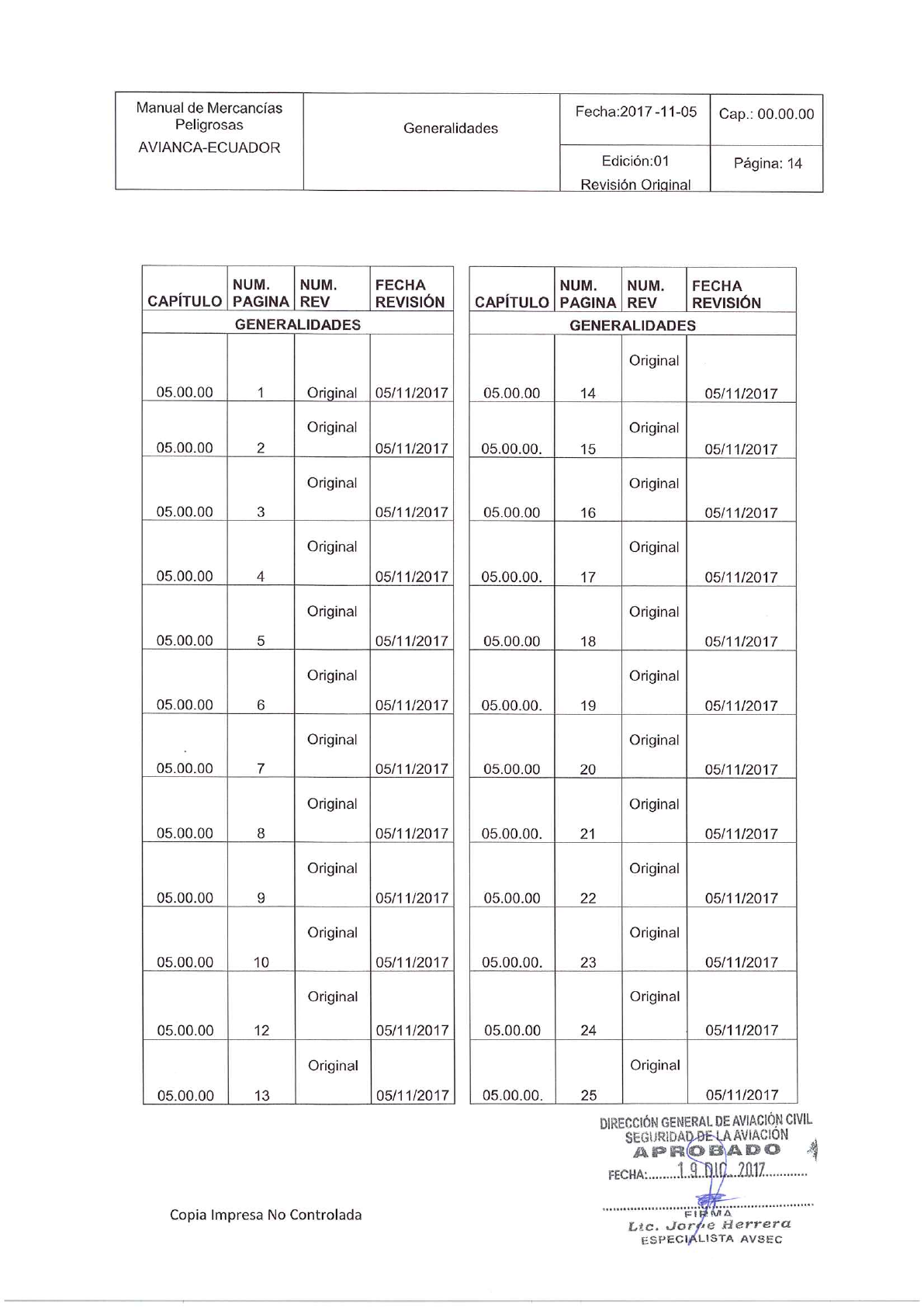 Gerencia de Mercancias Peligrosas para ser aprobado nuevamente.