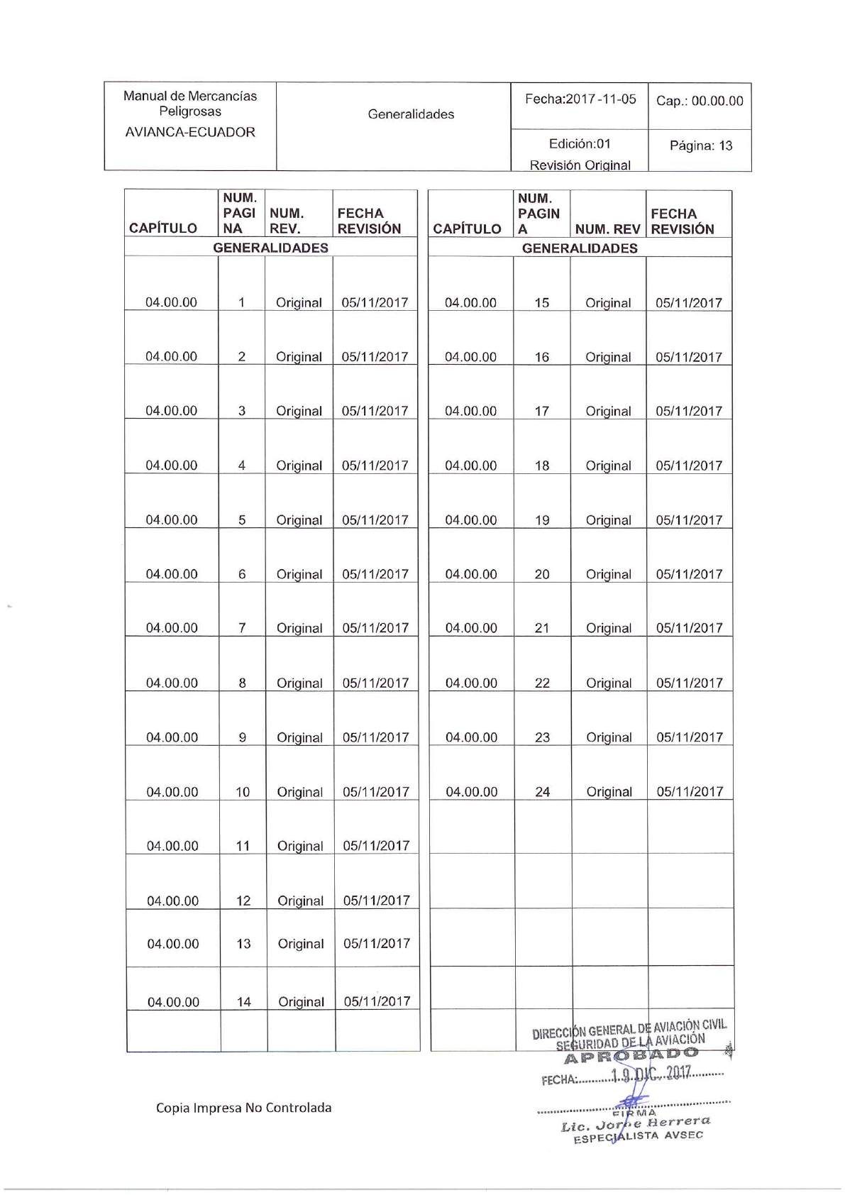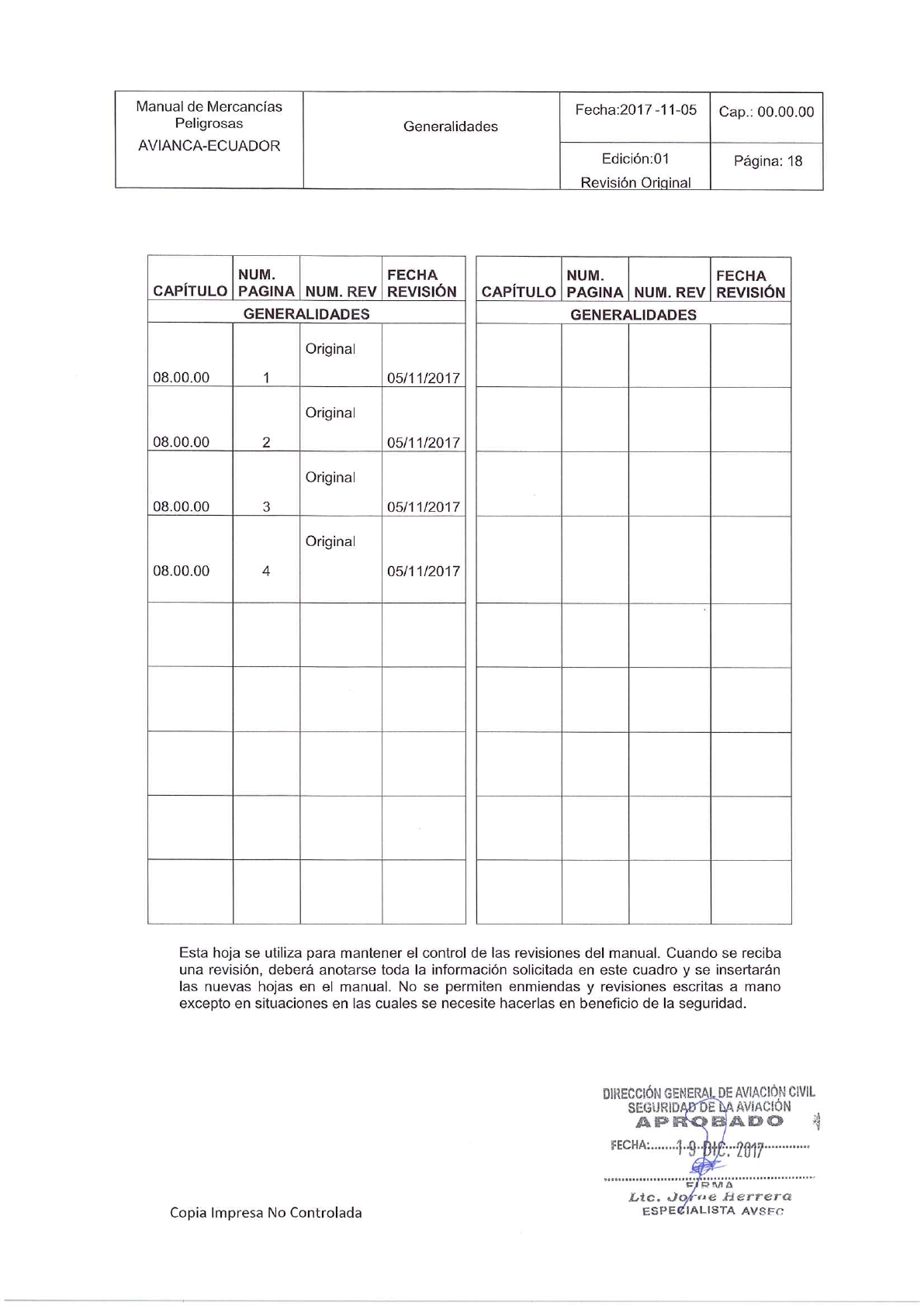 1.3. APROBACIÓN Y VIGENCIA DEL MANUAL PARA EL TRANSPORTE DE