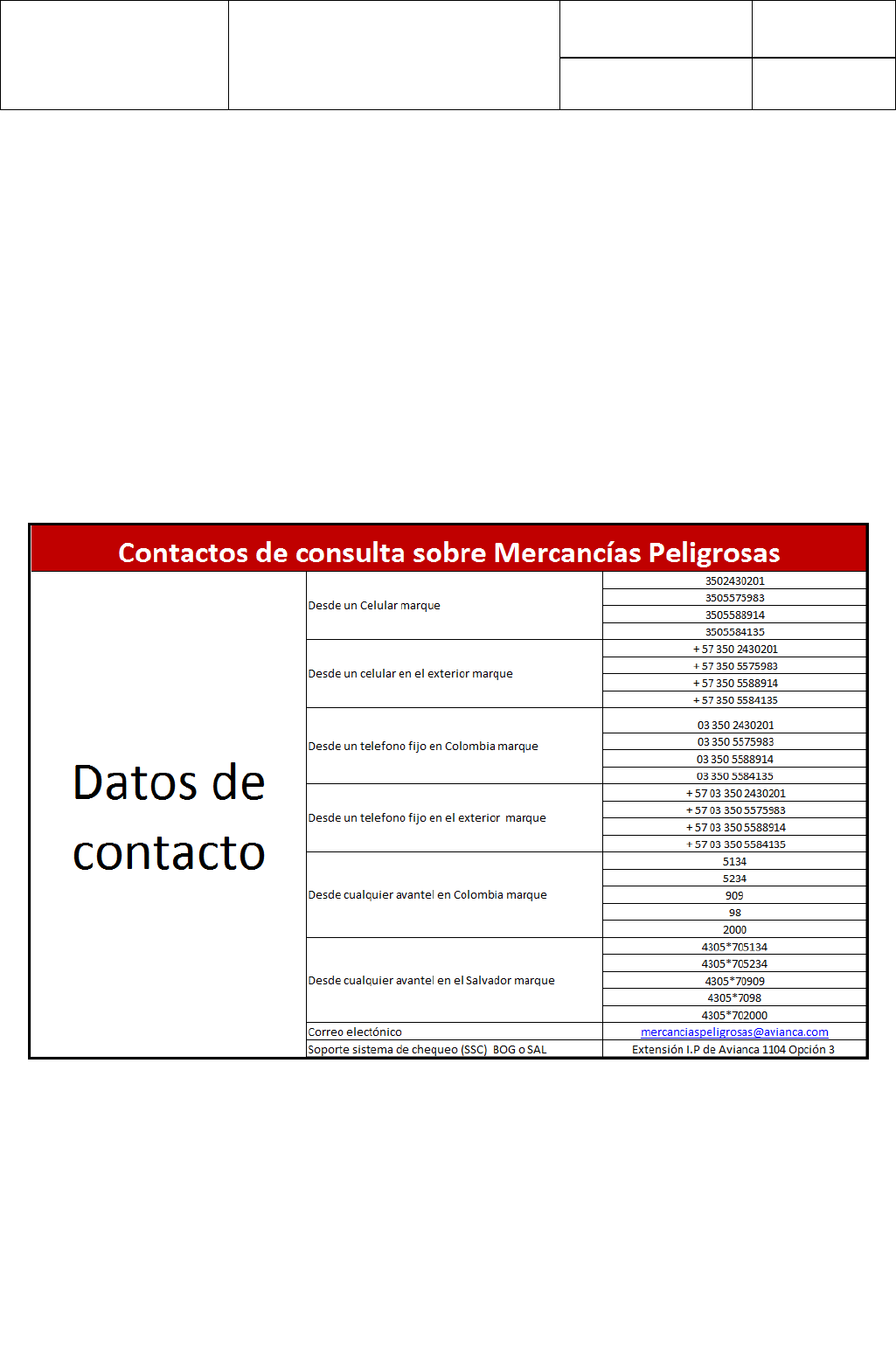 de soporte a la Gerencia de Mercancías Peligrosas para la nueva aceptación. En caso de