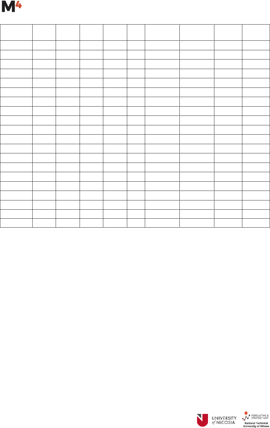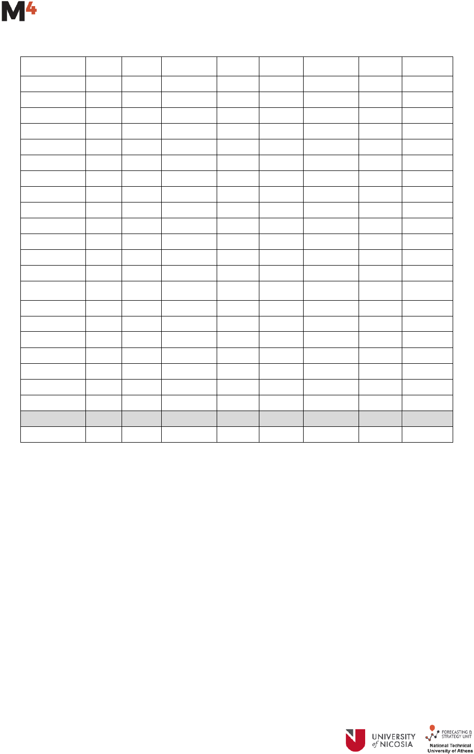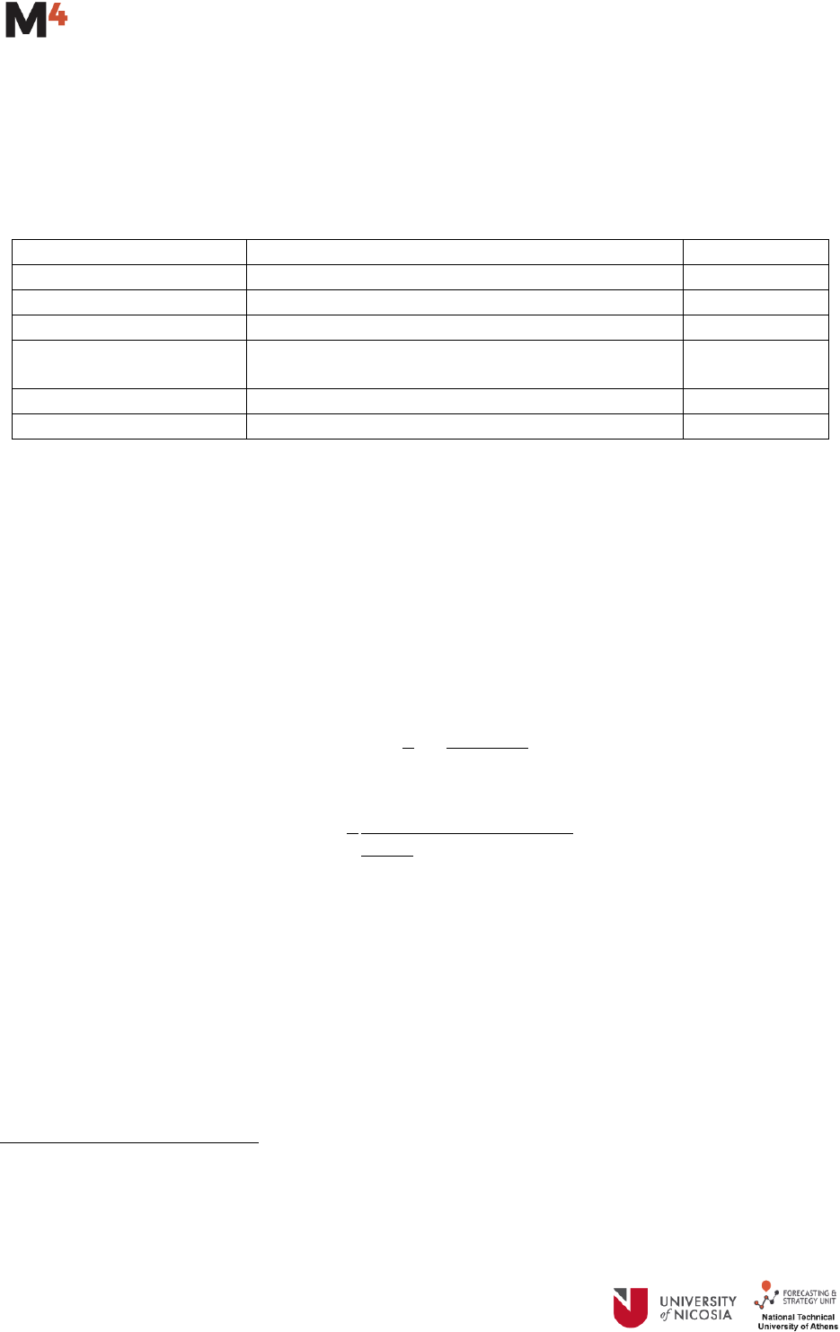 The number of forecasts required by each method is 6 for yearly data, 8 for quarterly, 18 for monthly, 13