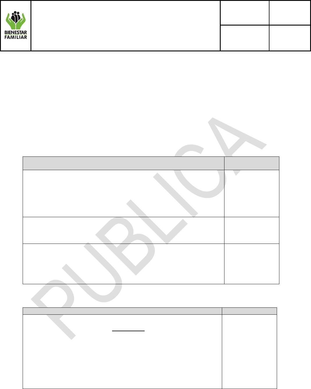 cumplimiento de la prestación del Servicio Público de Bienestar Familiar.