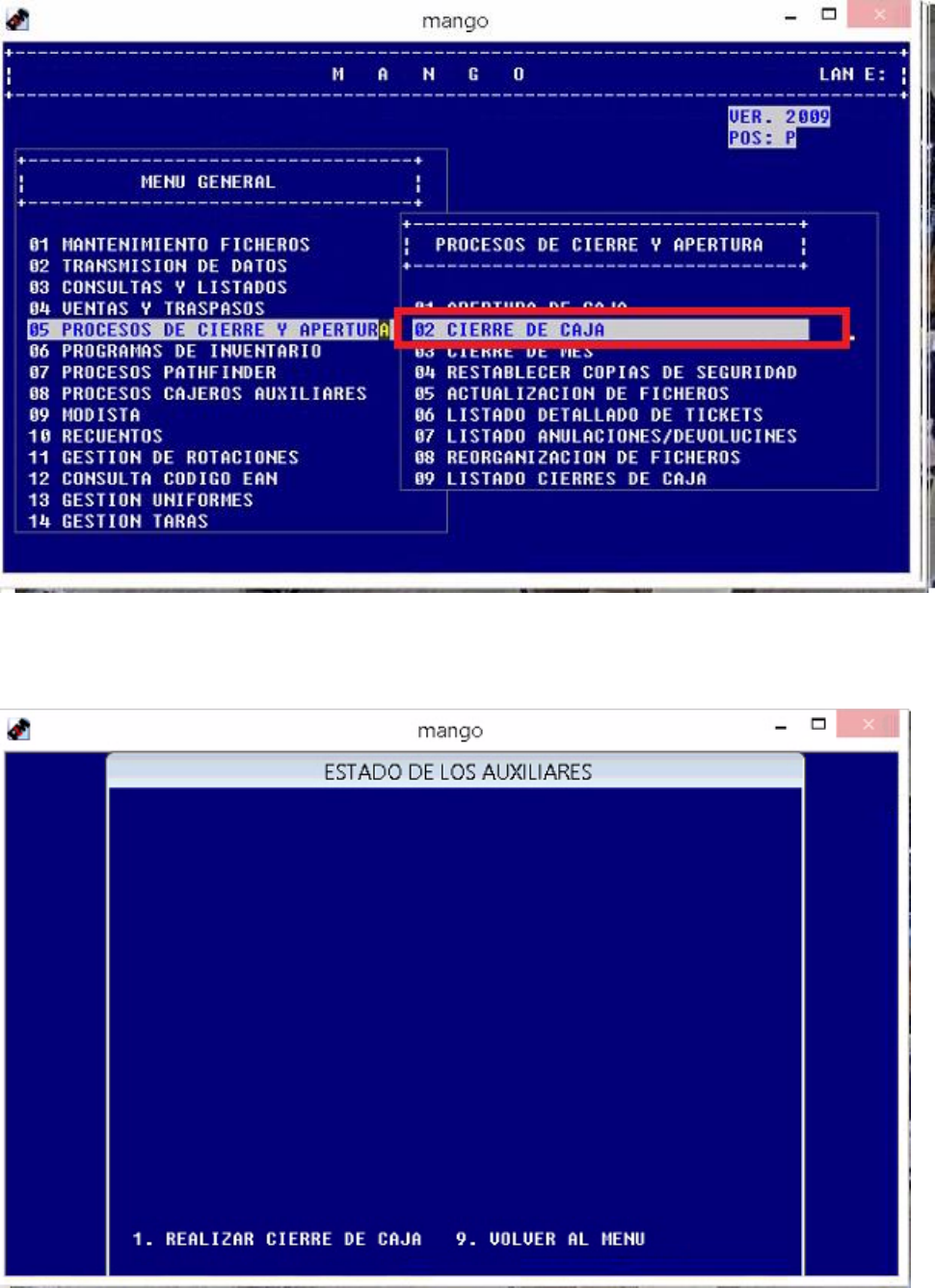 - Ir a la opción 05-02 (CIERRE DE CAJA)