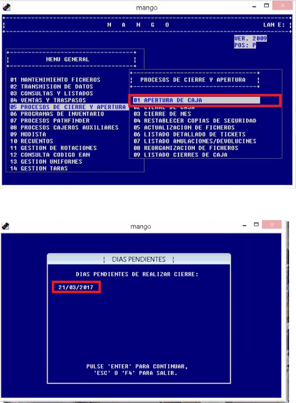 - Ir a la Opción 05 – 01 (APERTURA DE CAJA)