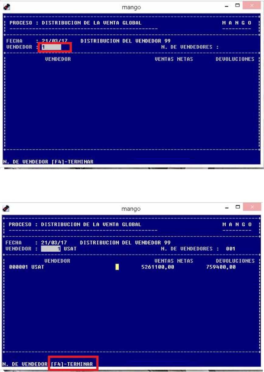 - Se abrirá una interfaz, Donde en VENDEDOR COLOCAREMOS 1