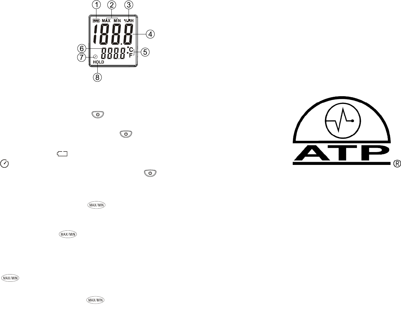 LCD to view the MIN reading since power on. To exit the MAX/MIN mode, press and hold the button