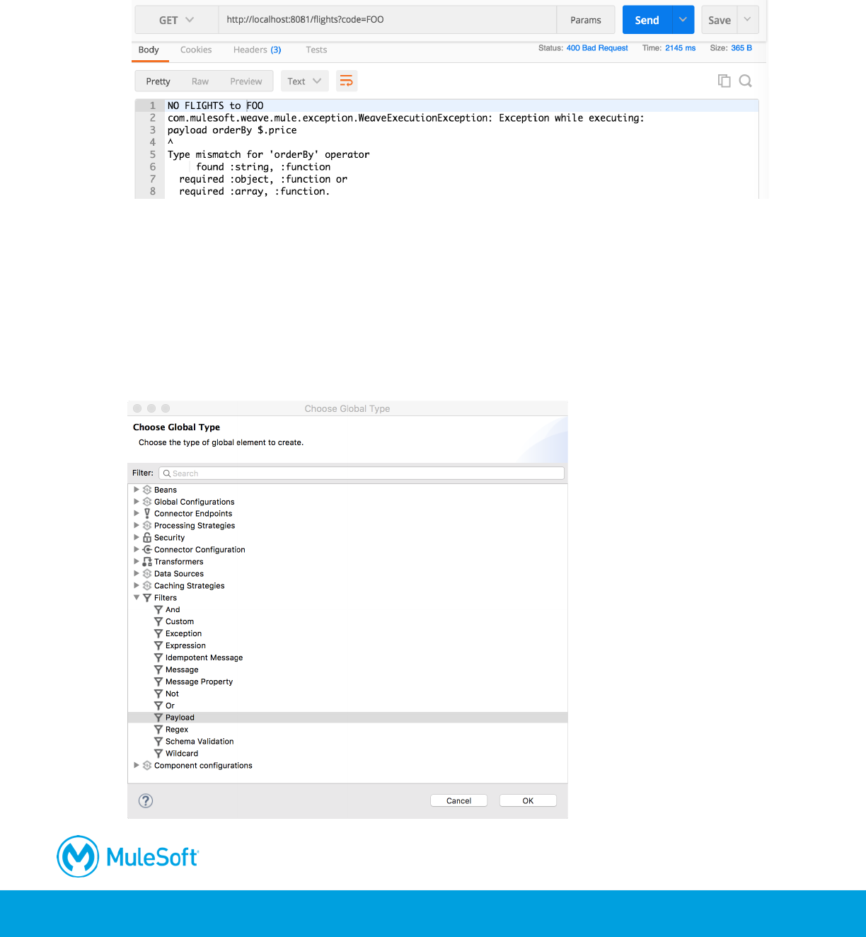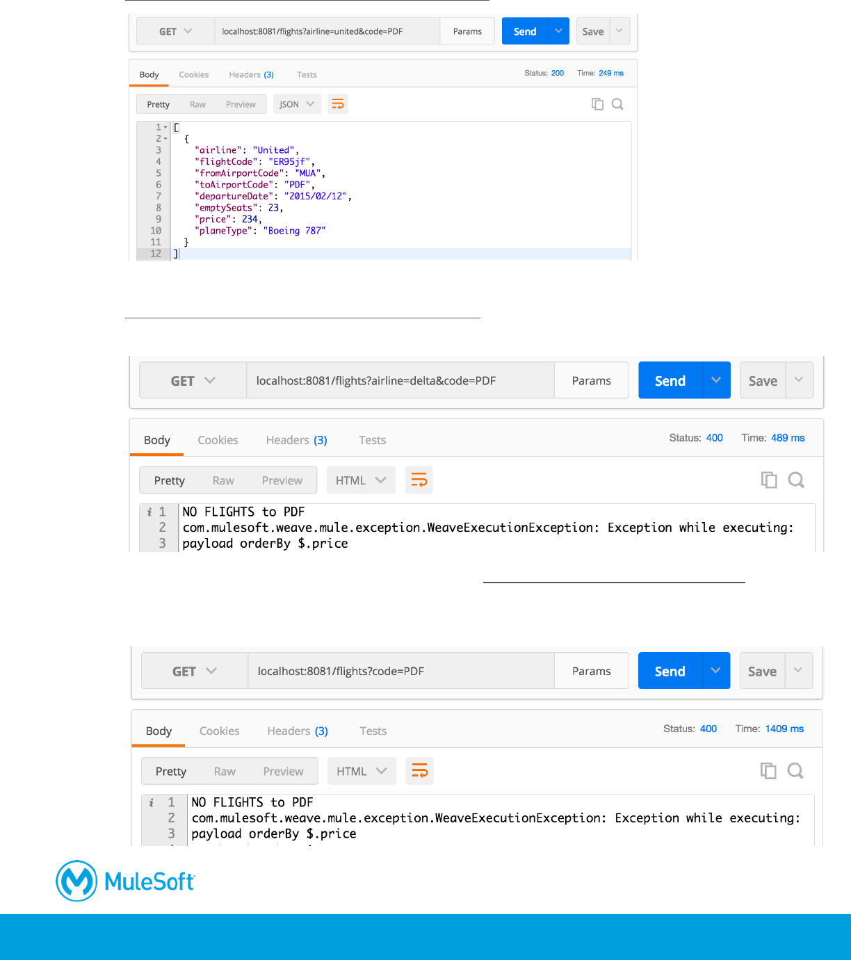 • Use DataWeave to sort the flights by price and return them as JSON.