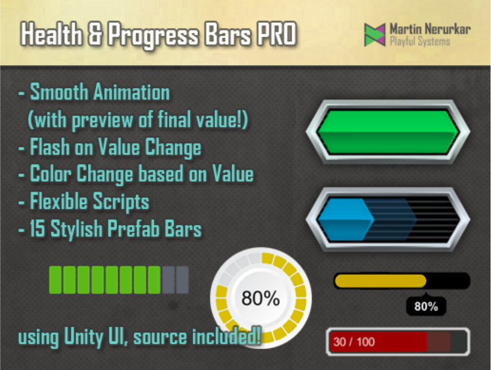 Health and Progress Bars Pro is an asset for Unity 3d to quickly generate good looking