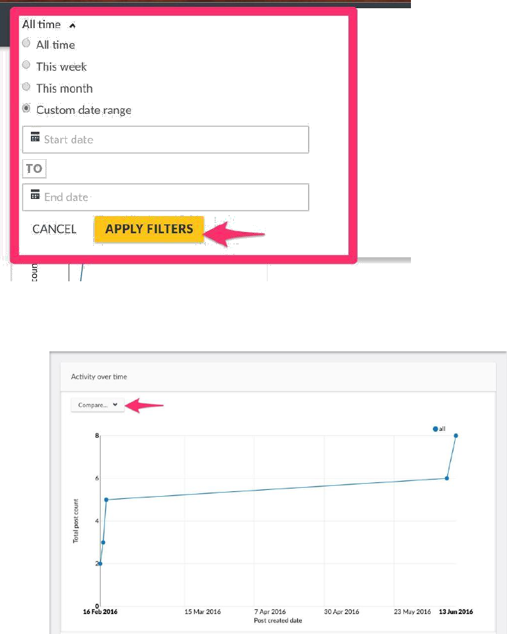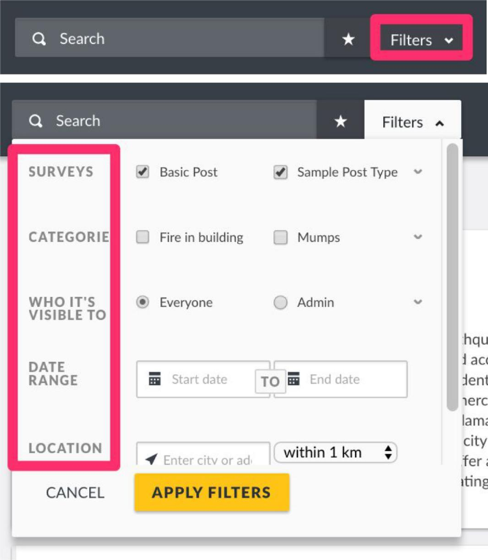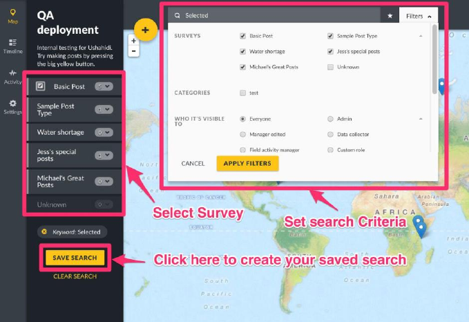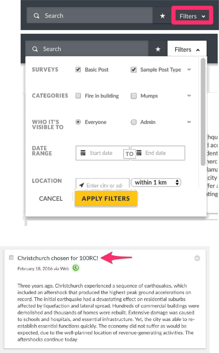 Saved searches are dynamic groupings of posts that match parameters chosen in filters.