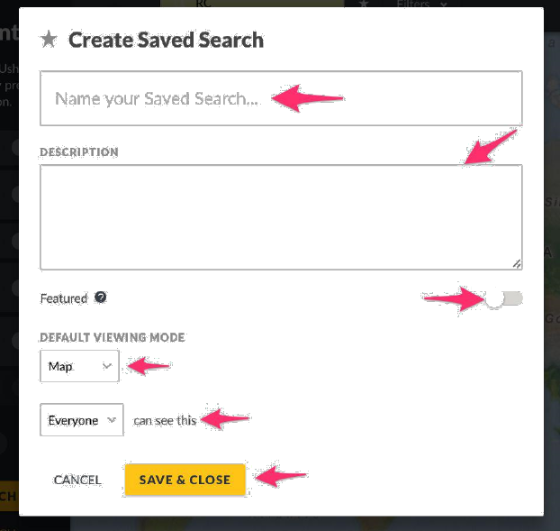 ○ Set the default viewing modefor this saved search(choosing between Map,