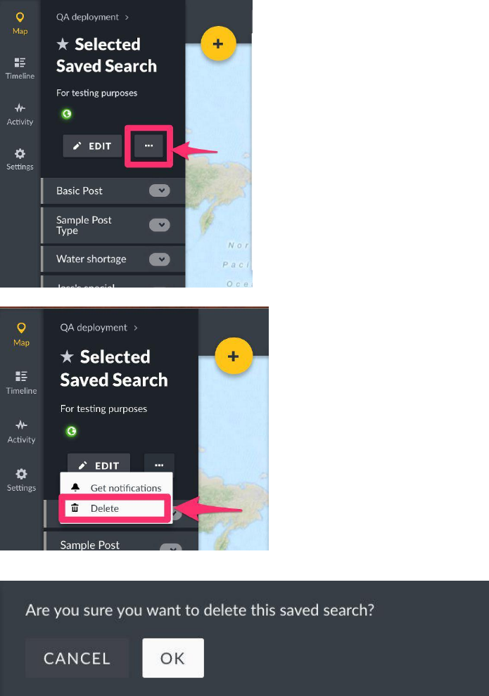 ○ If you’d like to cancel the saved search deletion process, click on Cancel