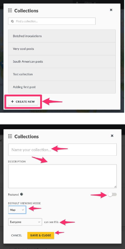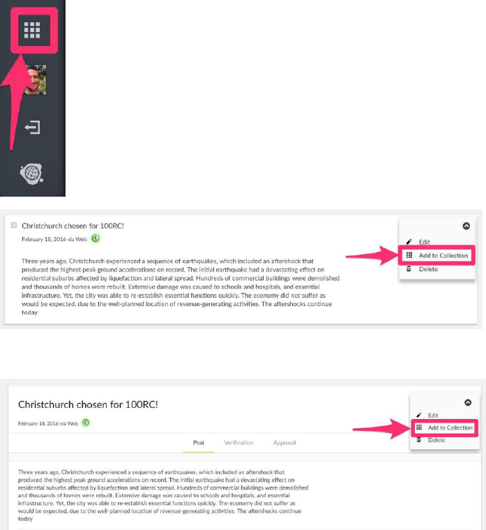 ●  You can also create a new collection to add the post to from these two pages. Simply click on