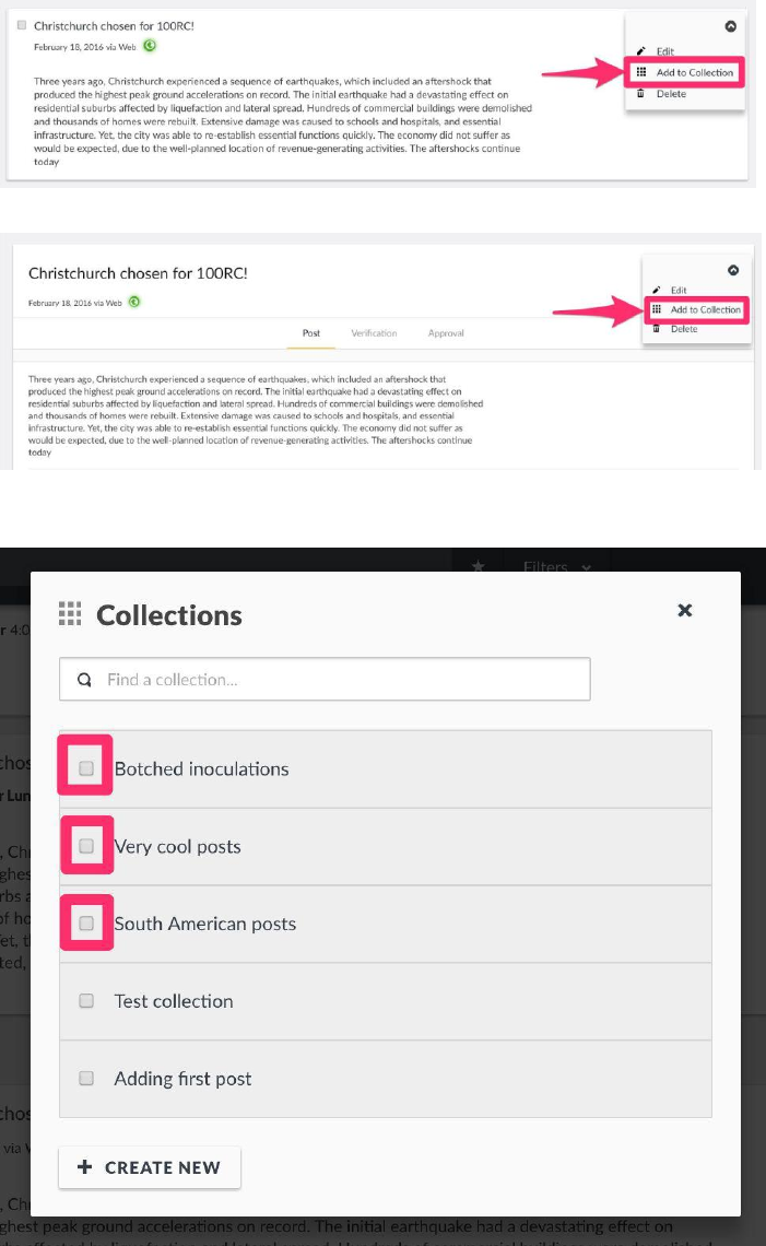 ● You can add a post to multiple collection, so tick all checkboxes that apply.