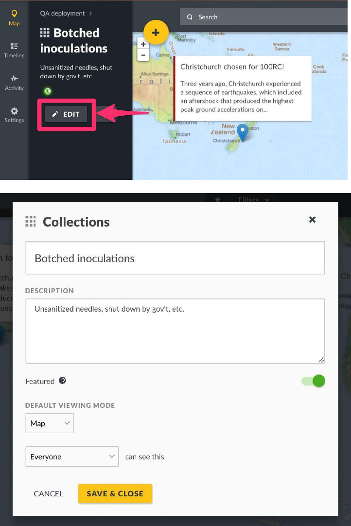○  Set the  default viewing  modefor this collection  (choosing  between  Map, Activity, or