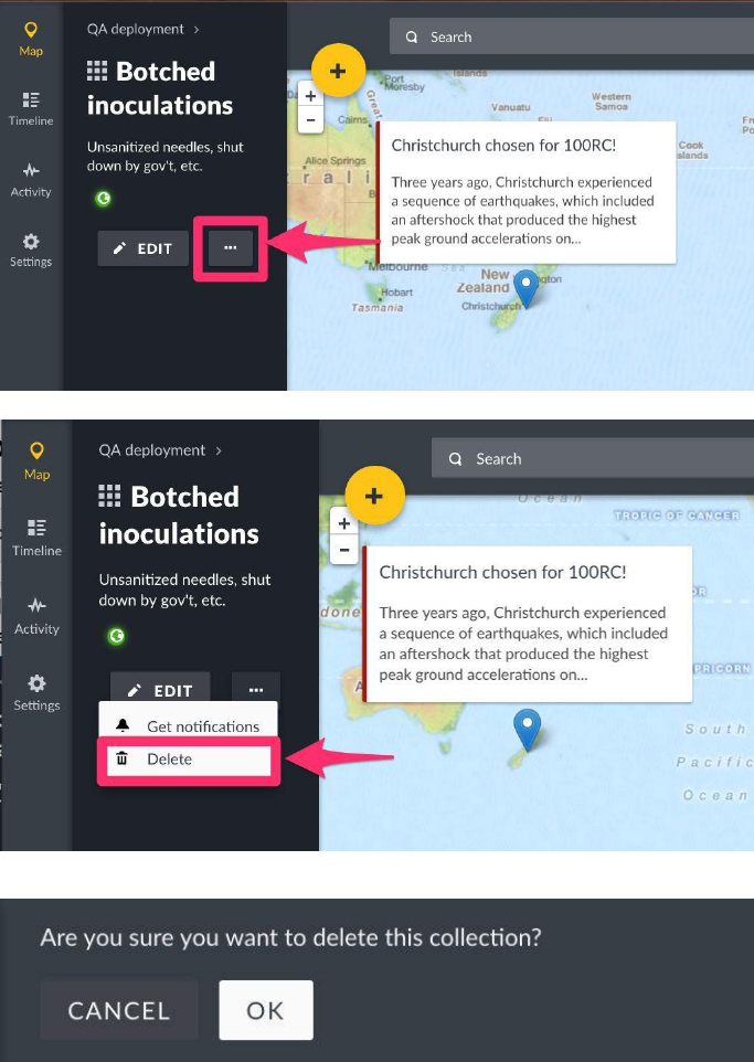 ○ If you’d like to cancel the collection deletion process, click on Cancel