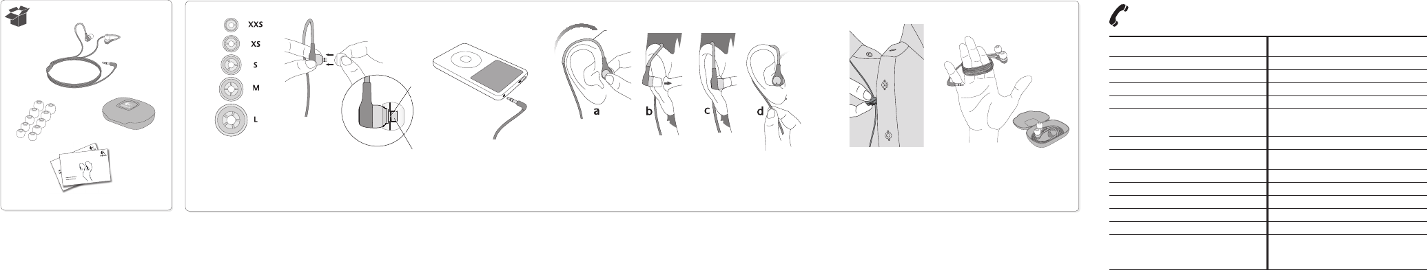 Attach ear cushions to earphone nozzle. Push ear 2.