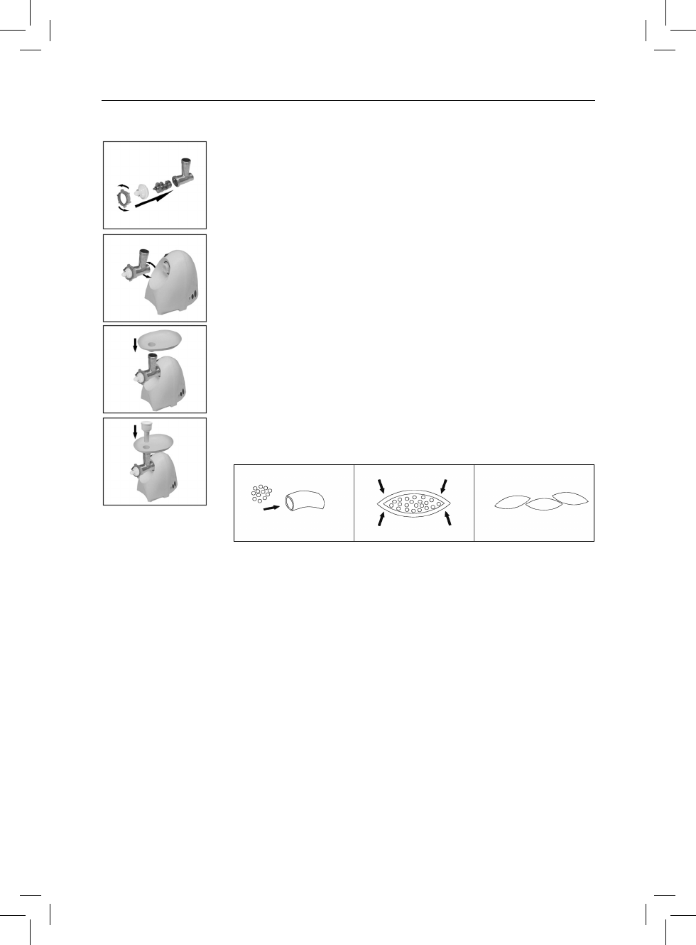 • Не используйте мясорубку для измельчения жестких продуктов (костей, орехов