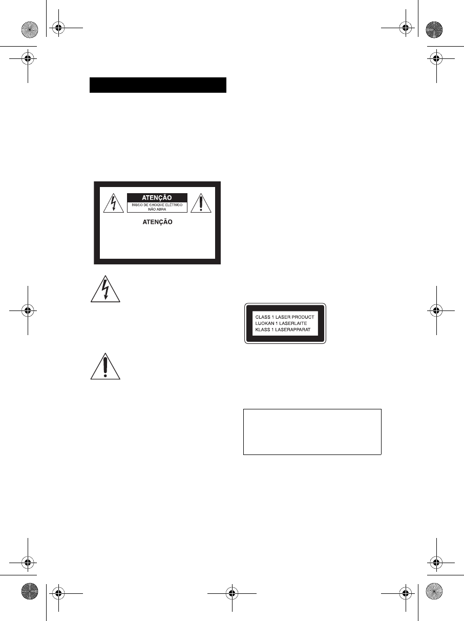 exposição ao raio laser, não abra o gabinete.