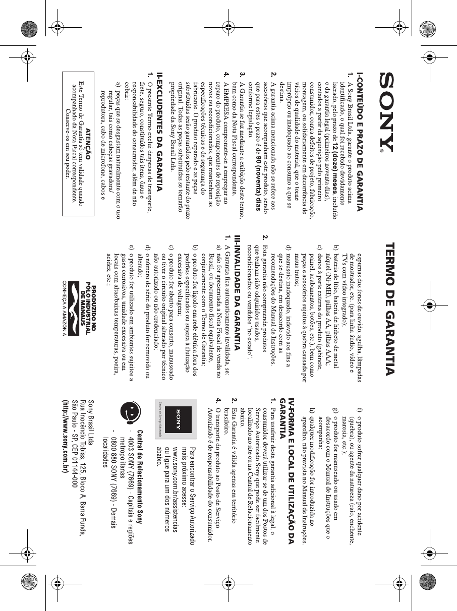 ©2012 Sony Corporation Impresso no Brasil