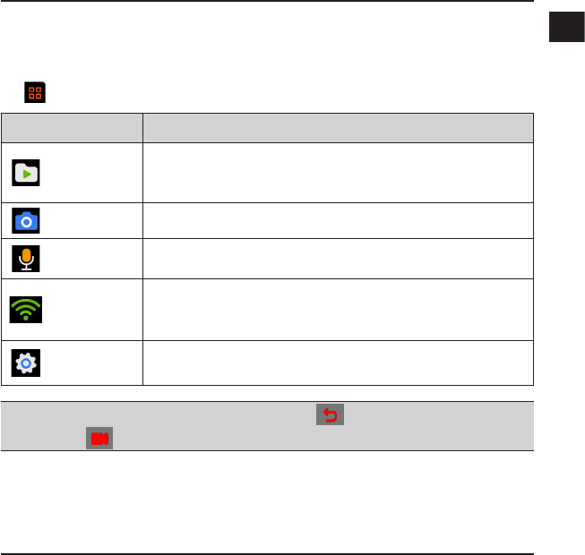 When the recorder is turned on, press to switch the