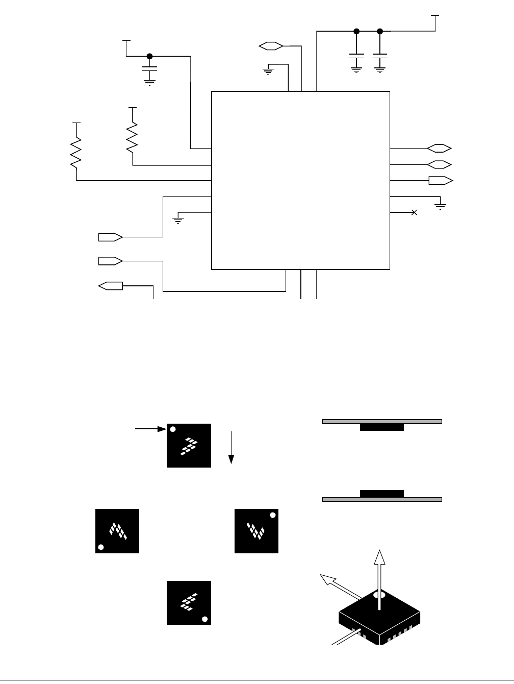 The devices are oriented on the tape as shown in Figure 28. The dot marked on each device indicates pin 1.