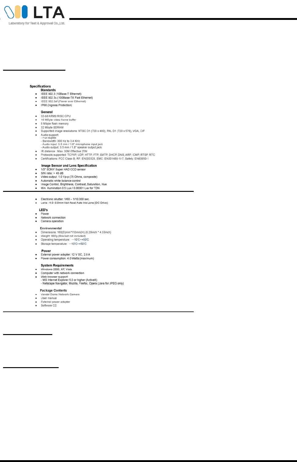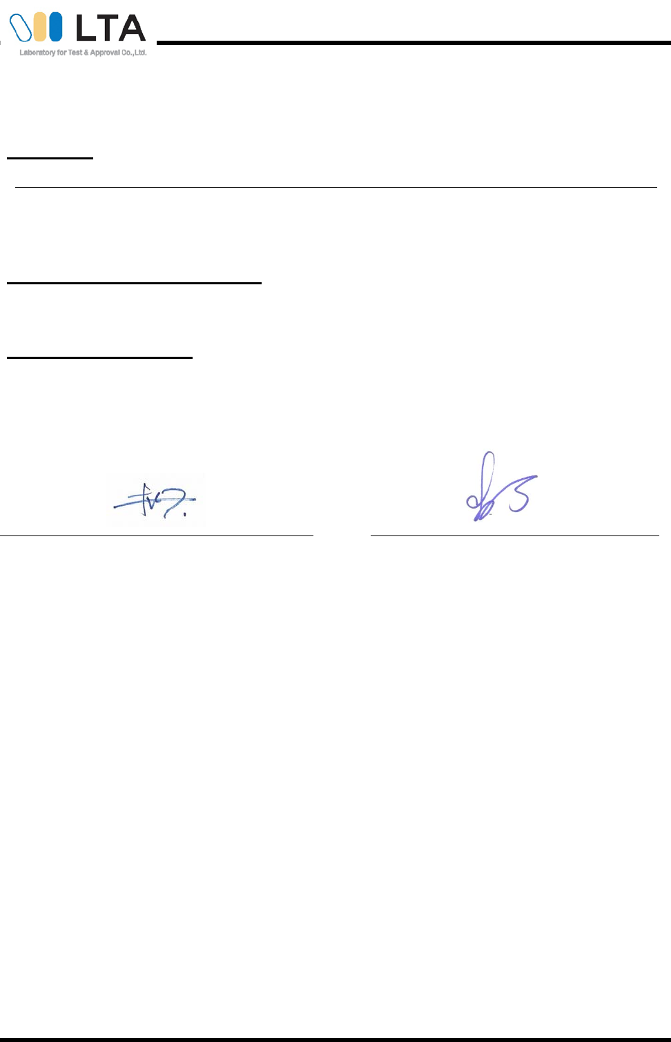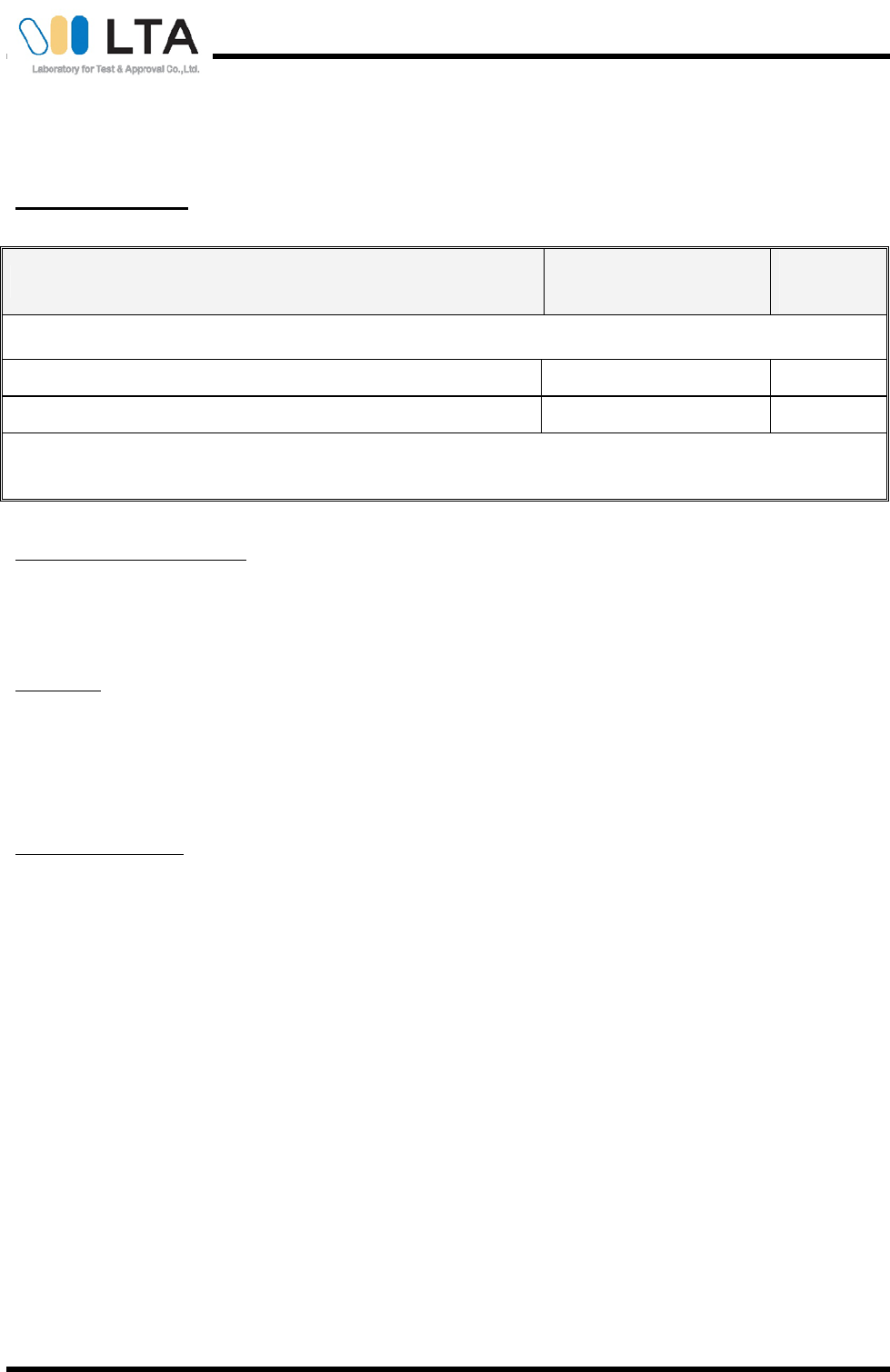 ( Refer to Test Specification and Test Results in the "LTA certification", page3.)