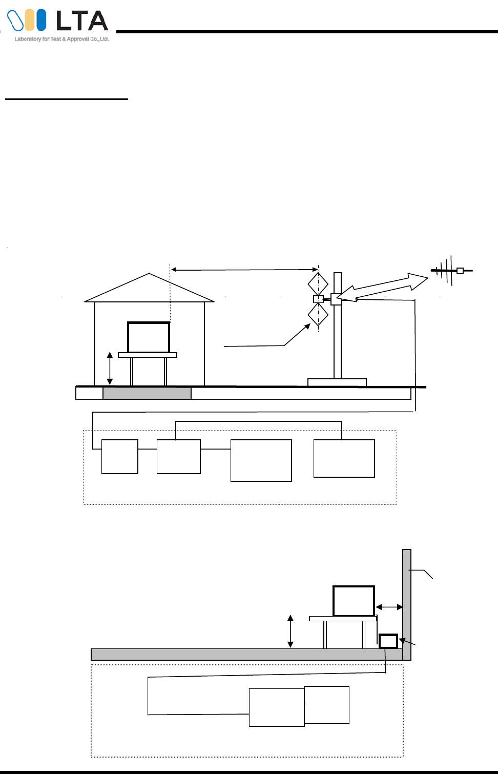 ・The EUT is placed on the non-conducting table with 0.8m height.