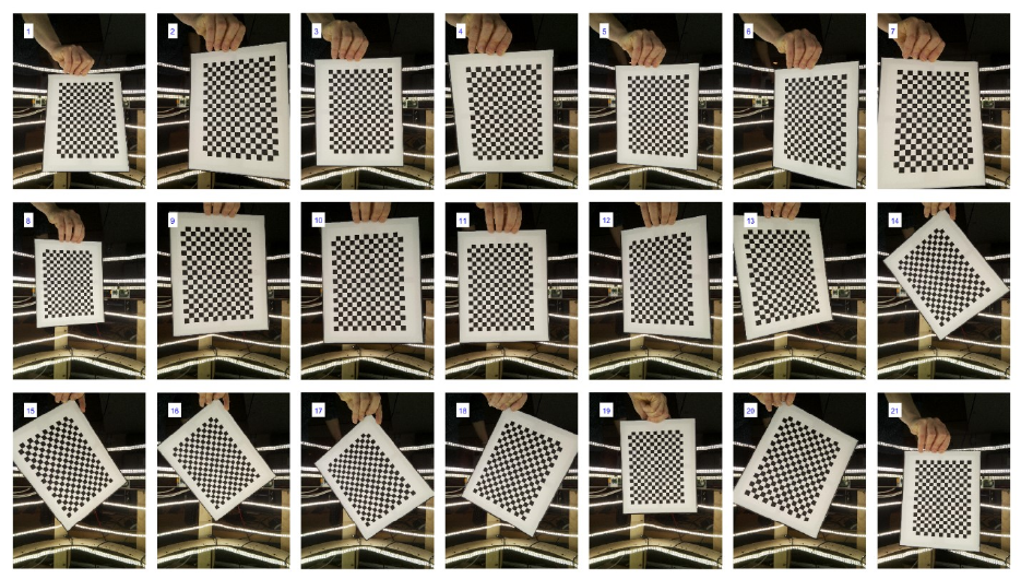 A set of flat checkerboard images, necessary only in case distortion correction is required.