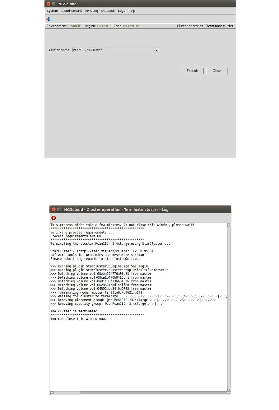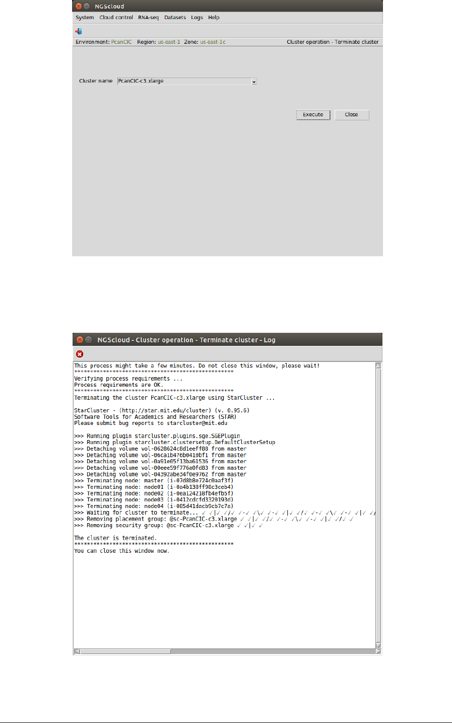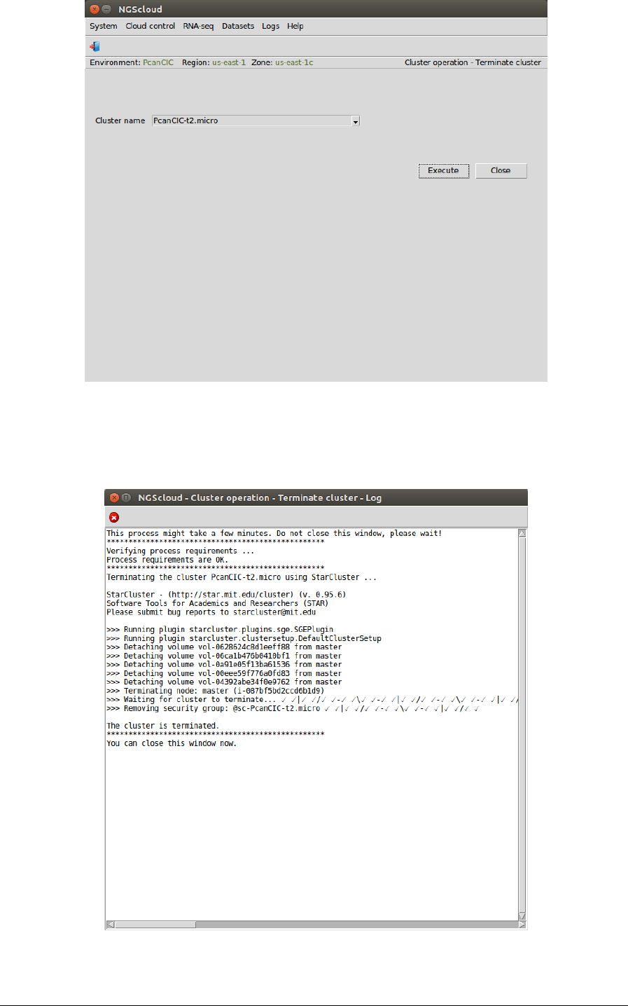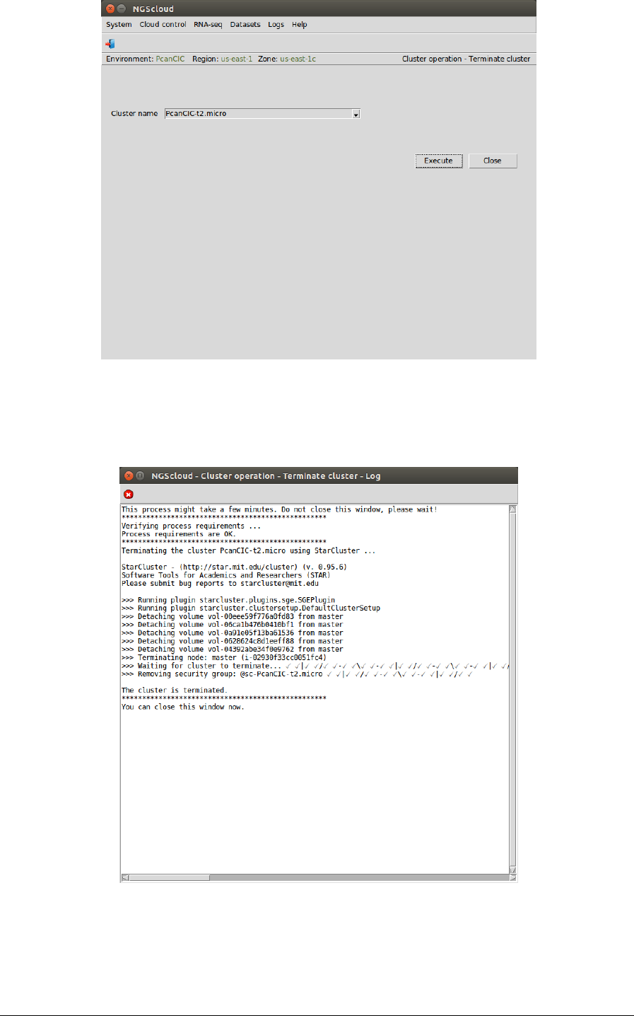 Once the analysis is complete, we terminate the cluster PcanCIC-t2.micro. To do so, we select