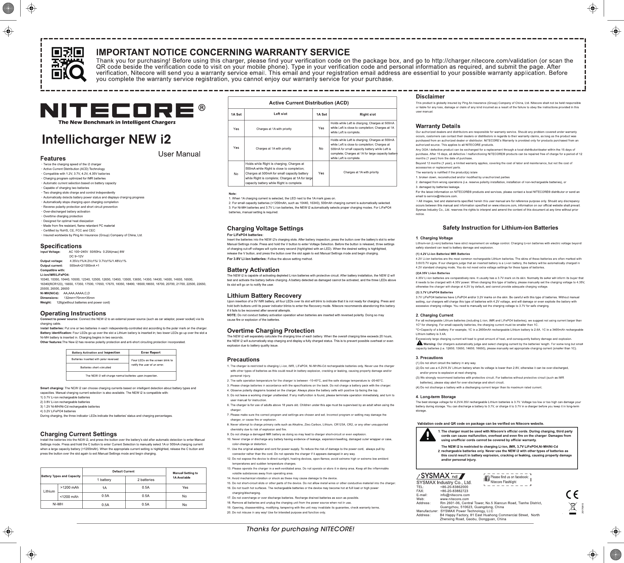 NEW I2 英文 说明书 T520170810 Forweb Nitecore Intellicharger Manual