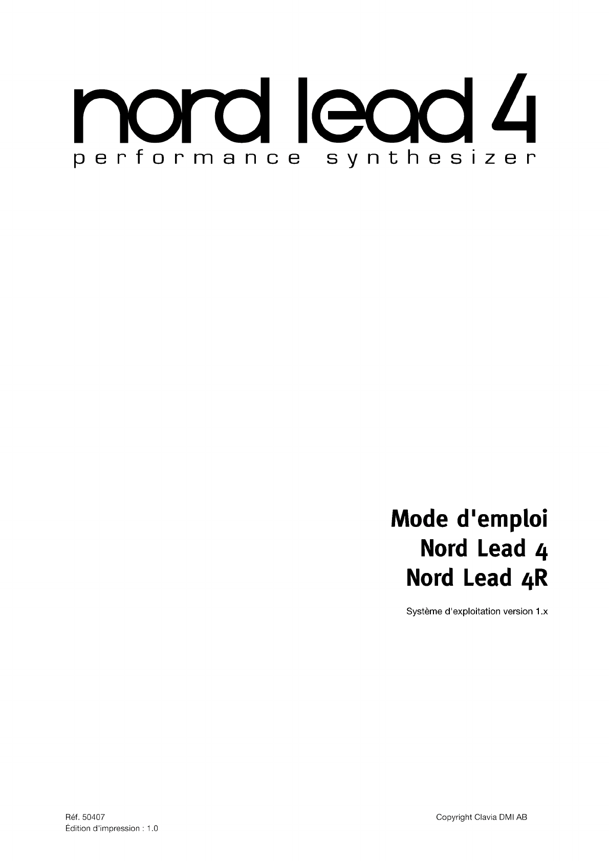 User Manual: Pdf Nord Lead 4 French User Manual v1.x Edition 1.0 s for Nord Lead 4 | Nord Keyboards