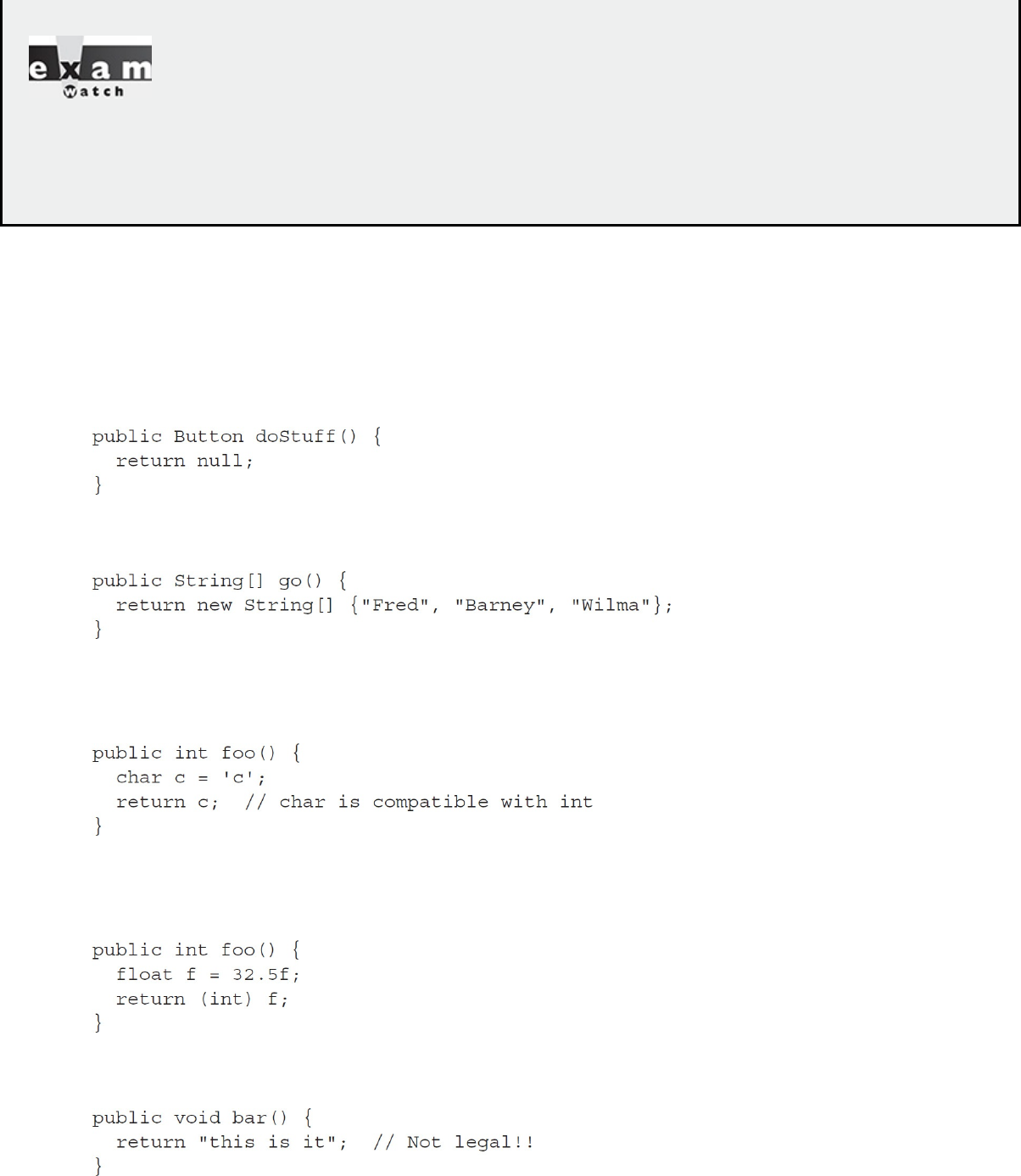 - Legal Return Types (OCA Objectives 2.2 and 6.1)