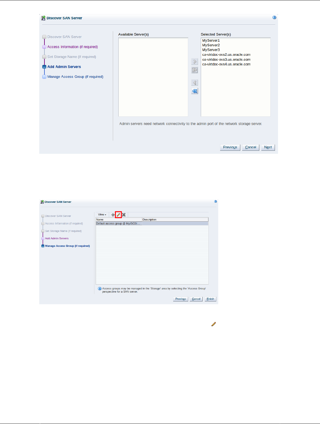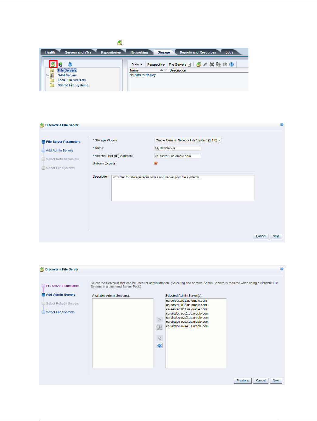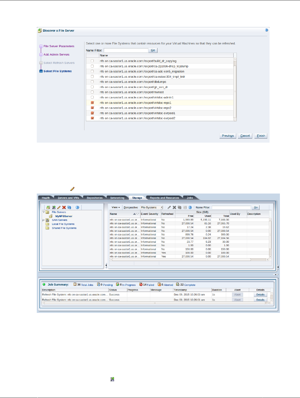 the storage type, you can perform different storage discovery operations from within Oracle VM Manager.
