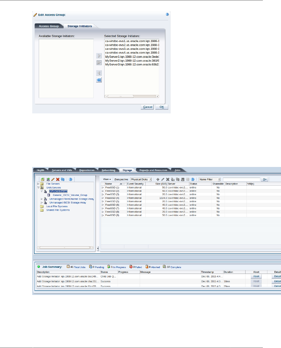 It is important that storage is configured outside of the Oracle VM environment prior to discovery. Depending on
