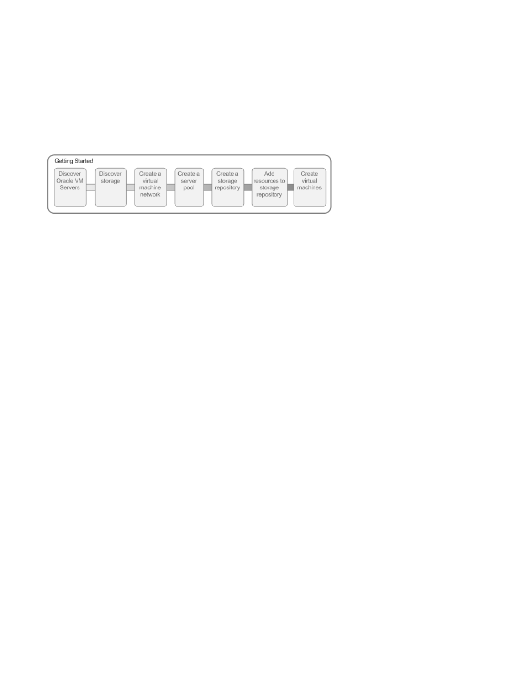 The Oracle VM Manager Getting Started Guide describes key tasks for users who are learning how to work