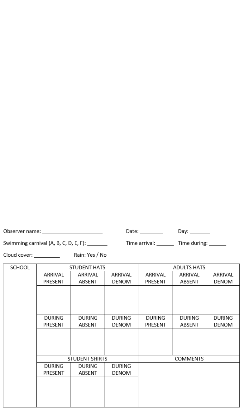 Record!hat!wearing!observations!during!specified!school!break!times,!such!as!morning!tea!and!
