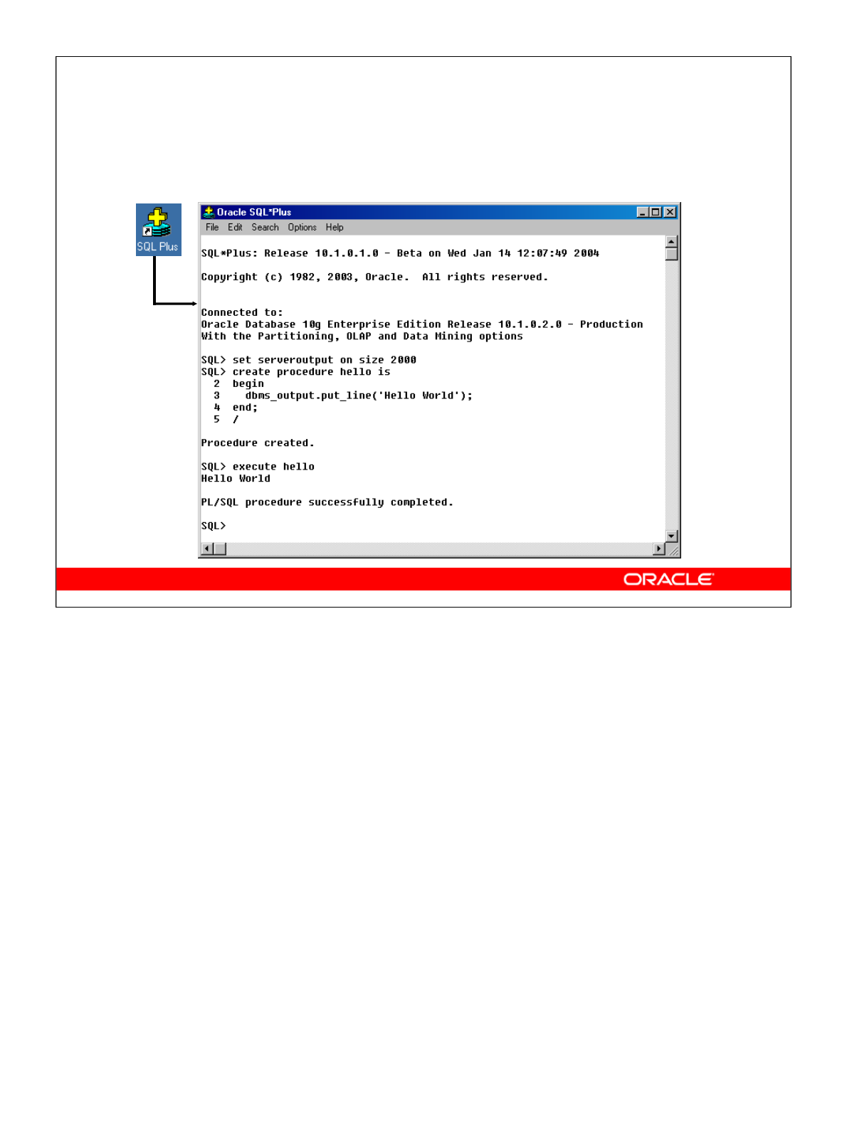 variables. PL/SQL blocks end with either END or END procedure_name.