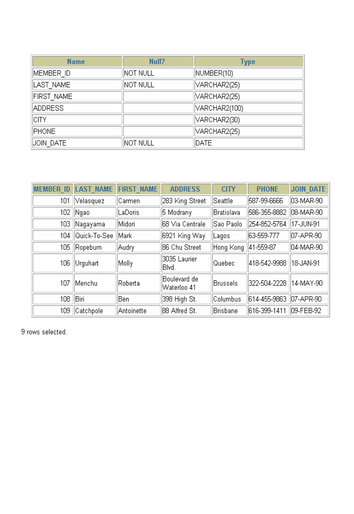 table. For the member ID number, use the sequence MEMBER_ID_SEQ; for the
