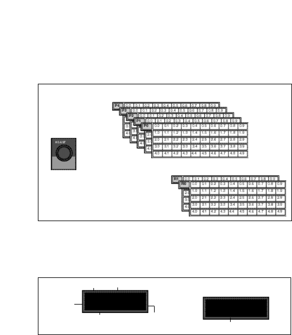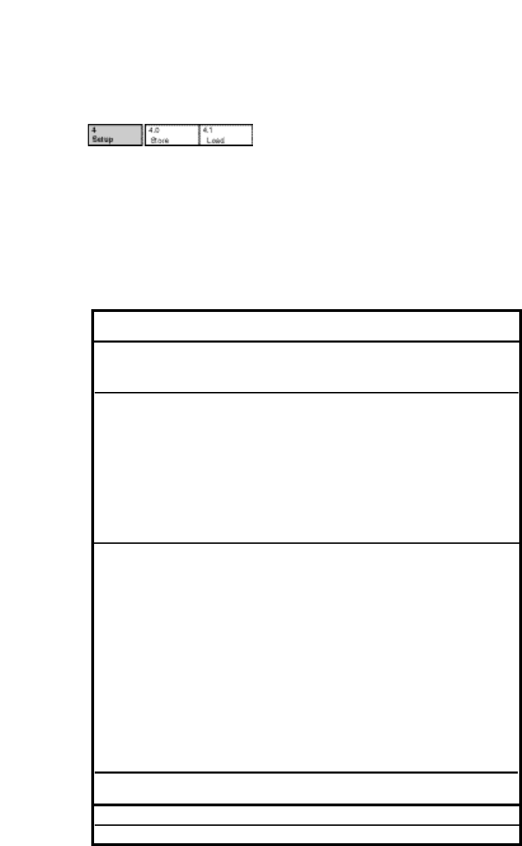 The following table shows the parameters which comprise a setup, along with