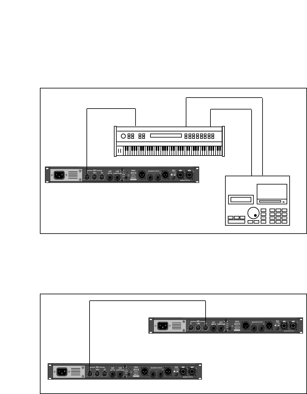 Control Interface MIDI: 5-pin DIN connectors provided for MIDI IN, THRU, & OUT