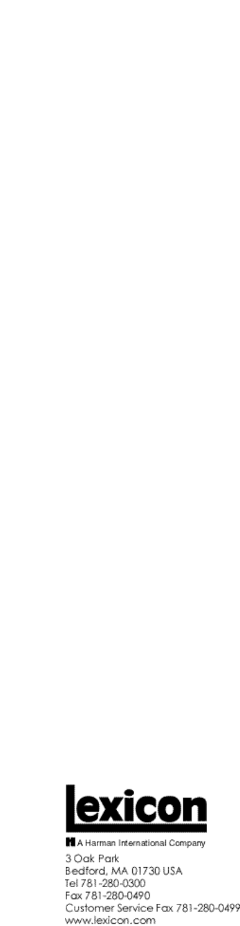 loading of the last loaded effect. If this sequence does not occur, contact Lexicon