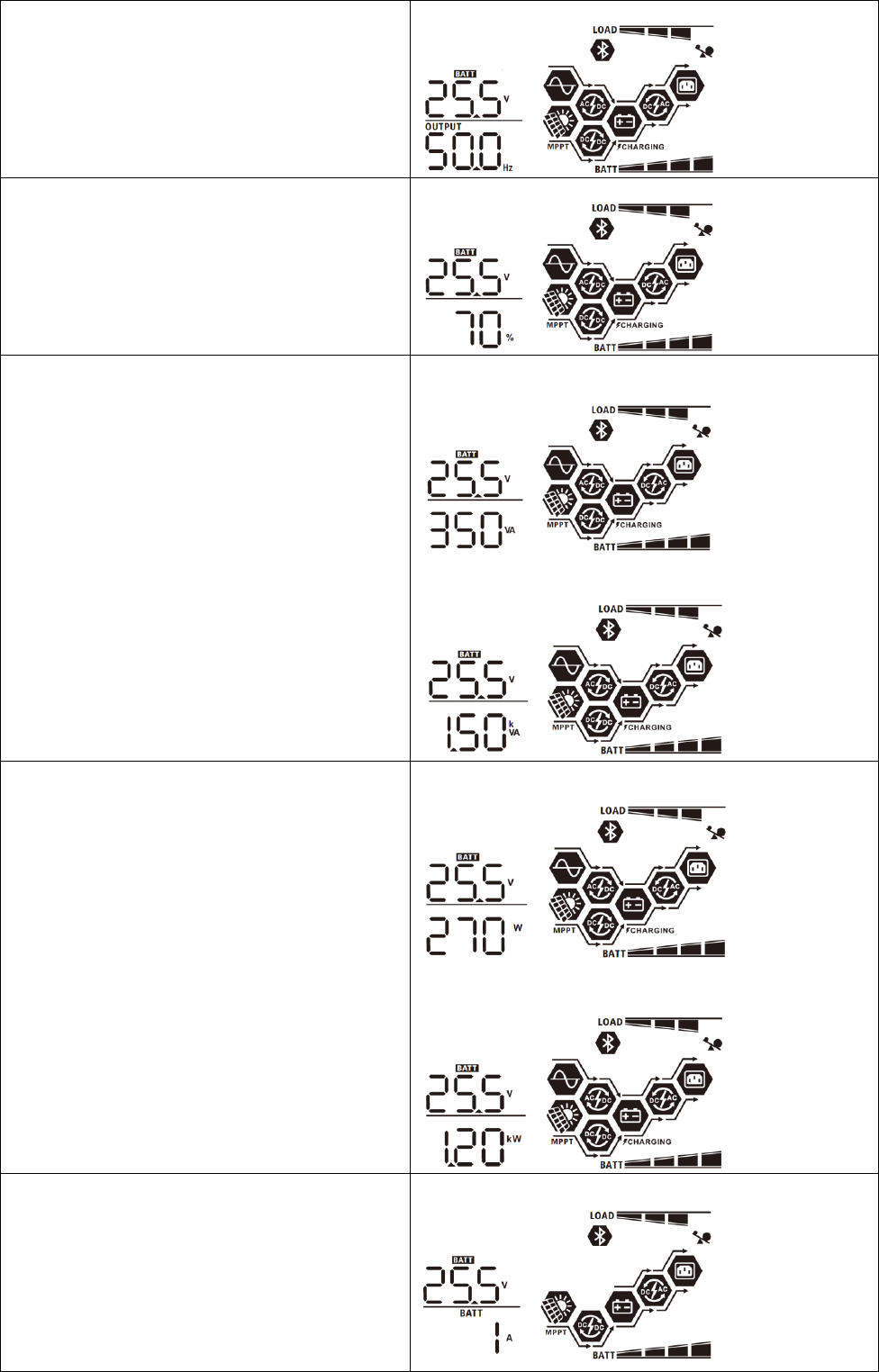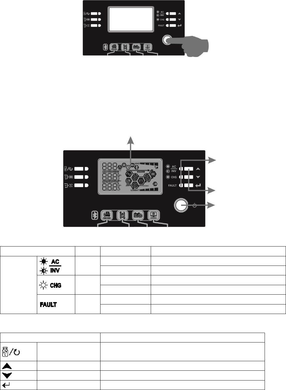 user-configurable and easy-accessible button operation such as battery charging current, AC/solar charger