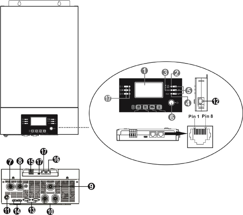 12. NEVER cause AC output and DC input short circuited. Do NOT connect to the mains when DC input